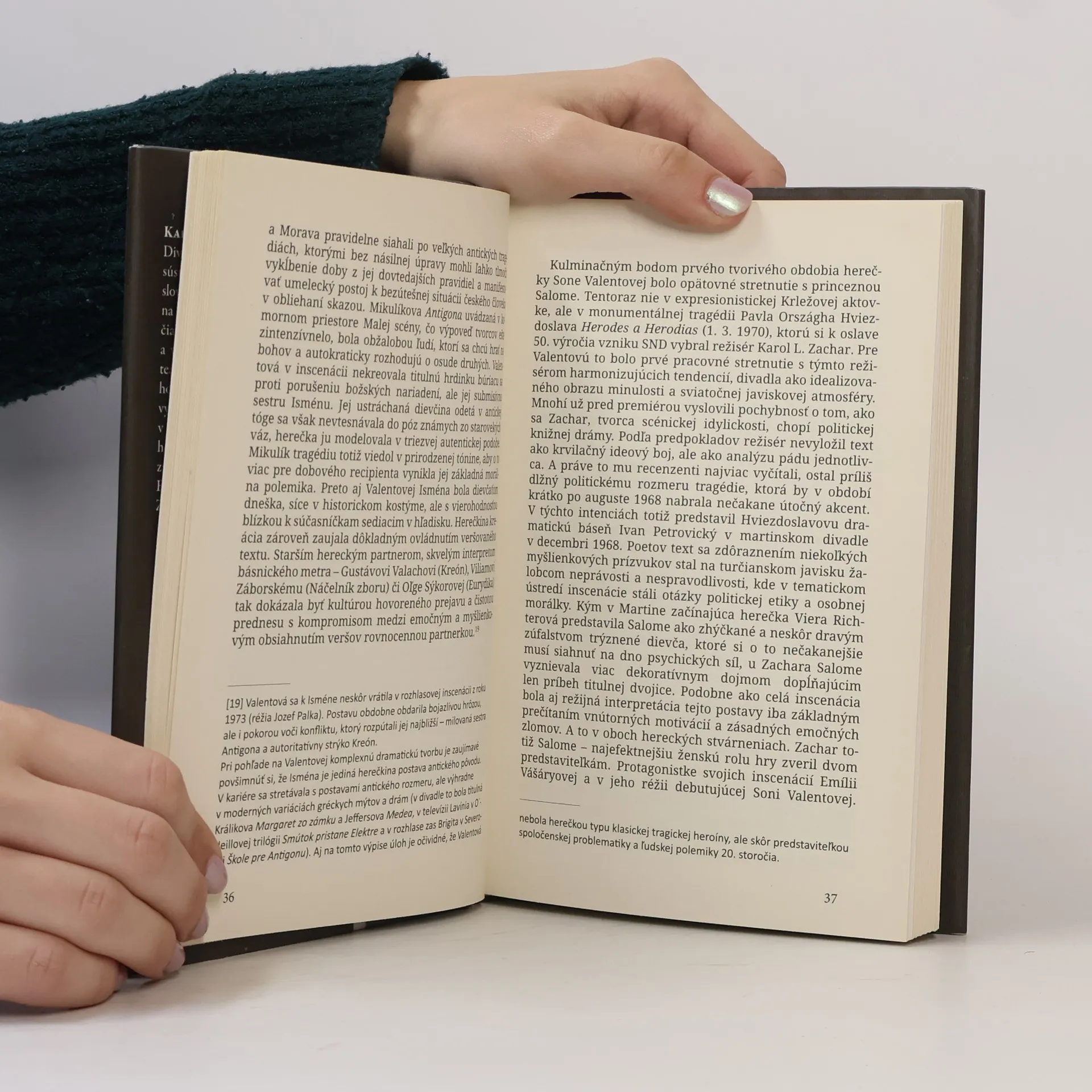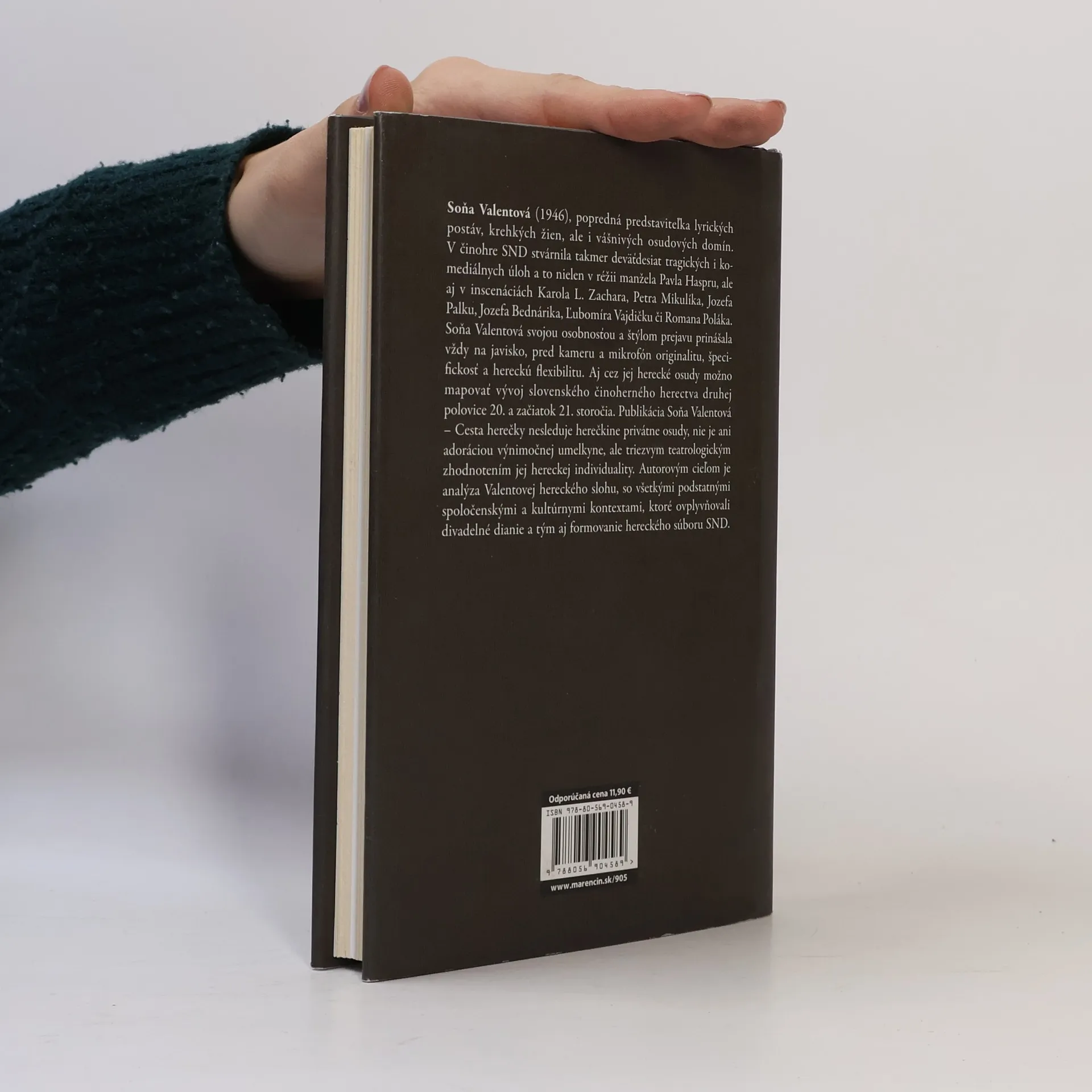 Soňa Valentová (1946), popredná predstaviteľka lyrických postáv, krehkých žien, ale i vášnivých osudových domín. V činohre SND stvárnila takmer deväťdesiat tragických i komediálnych úloh a to nielen v réžii manžela Pavla Haspru, ale aj v inscenáciách Karola L. Zachara, Petra Mikulíka, Jozefa Palku, Jozefa Bednárika, Ľubomíra Vajdičku či Romana Poláka. Soňa Valentová svojou osobnosťou a štýlom prejavu prinášala vždy na javisko, pred kameru a mikrofón originalitu, špecifickosť a hereckú flexibilitu. Aj cez jej herecké osudy možno mapovať vývoj slovenského činoherného herectva druhej polovice 20. a začiatok 21. storočia. Publikácia Soňa Valentová – Cesta herečky nesleduje herečkine privátne osudy, nie je ani adoráciou výnimočnej umelkyne, ale triezvym teatrologickým zhodnotením jej hereckej individuality. Autorovým cieľom je analýza Valentovej hereckého slohu, so všetkými podstatnými spoločenskými a kultúrnymi kontextami, ktoré ovplyvňovali divadelné dianie a tým aj formovanie hereckého súboru SND.