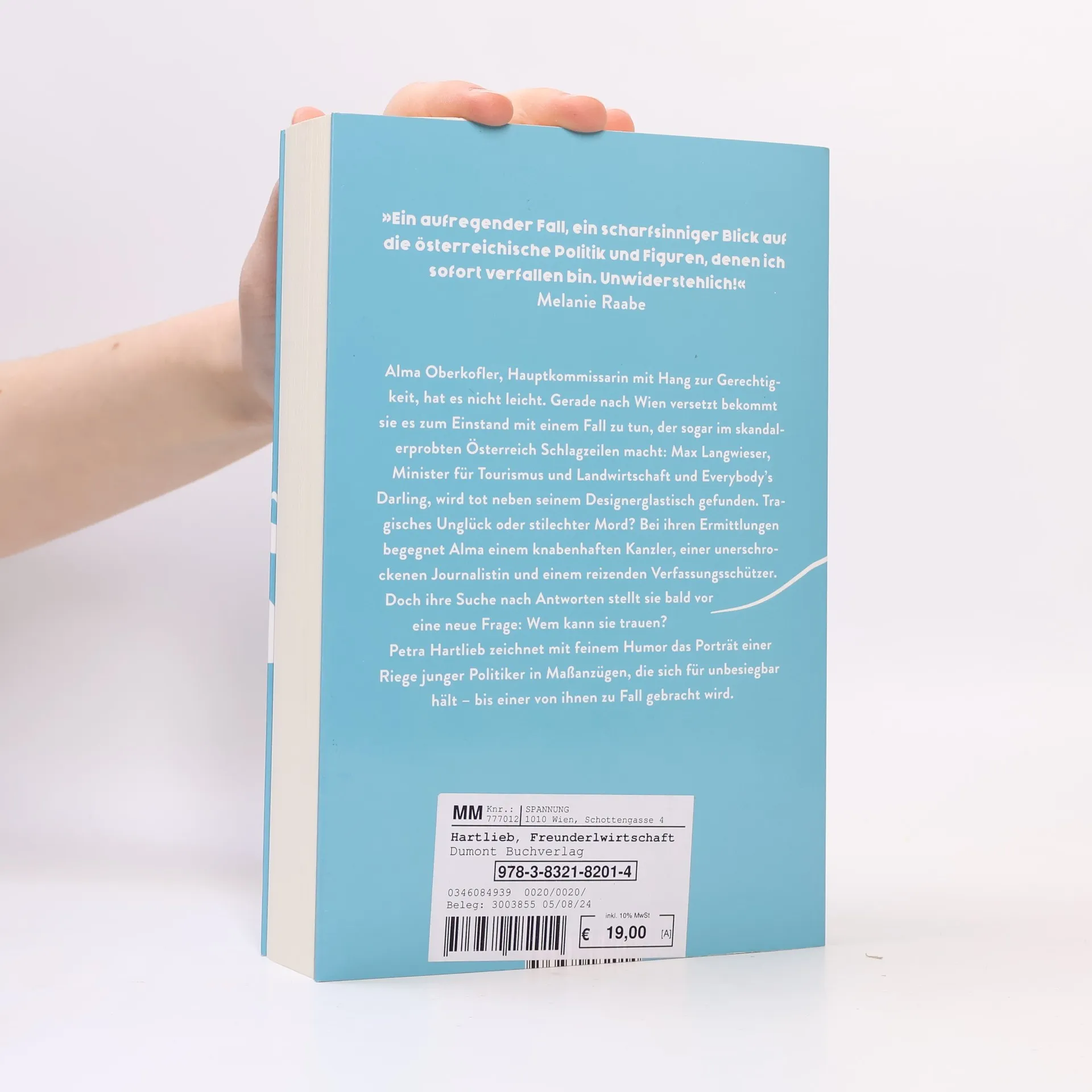 Alma Oberkofler, Hauptkommissarin mit Hang zur Gerechtigkeit, hat es nicht leicht. Frisch nach Wien versetzt, bekommt sie es gleich mit einem Fall zu tun, der sogar im skandalerprobten Österreich für Schlagzeilen sorgt: Ein Minister hat in seiner Penthouse-Wohnung das Zeitliche gesegnet – allem Anschein nach eher unfreiwillig. Das illustre Umfeld des Toten gibt sich charmant, aber wenig auskunftsfreudig. Kein Wunder, denn ob Kaffeehaus oder Kanzleramt: In der Hauptstadt der Freunderlwirtschaft scheint jeder jedem einen Gefallen zu schulden. Bei der Wahrheitsfindung helfen Alma eine blitzgescheite Buchhändlerin, ein eventuell vertrauenswürdiger Verfassungsschützer – und manchmal auch ein Achtel Veltliner. Liebesgrüße aus Wien: Charmant, lässig und mit feinem Humor erzählt Petra Hartlieb einen Kriminalfall, der fast so originell ist wie die Realität.