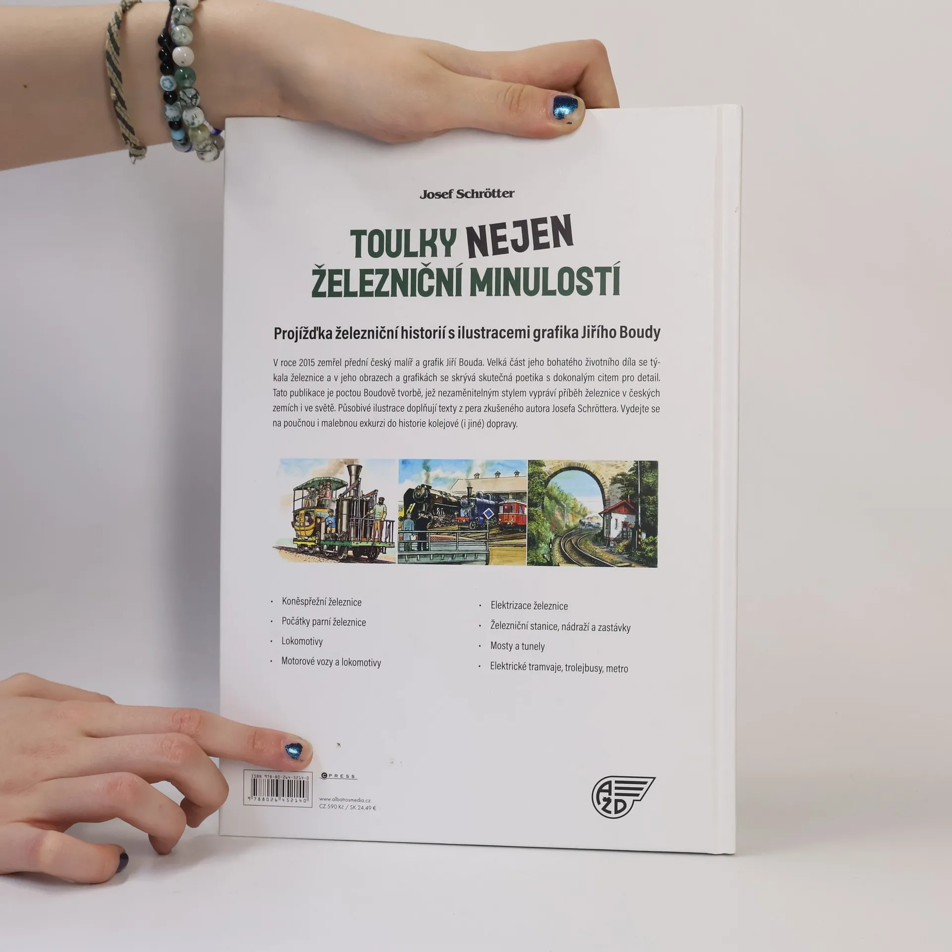V roce 2015 zemřel přední český malíř a grafik Jiří Bouda. Velká část jeho bohatého životního díla se týkala železnice a v jeho obrazech a grafikách se skrývá skutečná poetika s dokonalým citem pro detail. Tato publikace je poctou Boudově tvorbě, jež nezaměnitelným stylem vypráví příběh železnice v českých zemích. Působivé ilustrace doplňují texty z pera zkušeného autora Josefa Schröttera. Vydejte se na poučnou i malebnou exkurzi do historie naší kolejové (i jiné) dopravy.