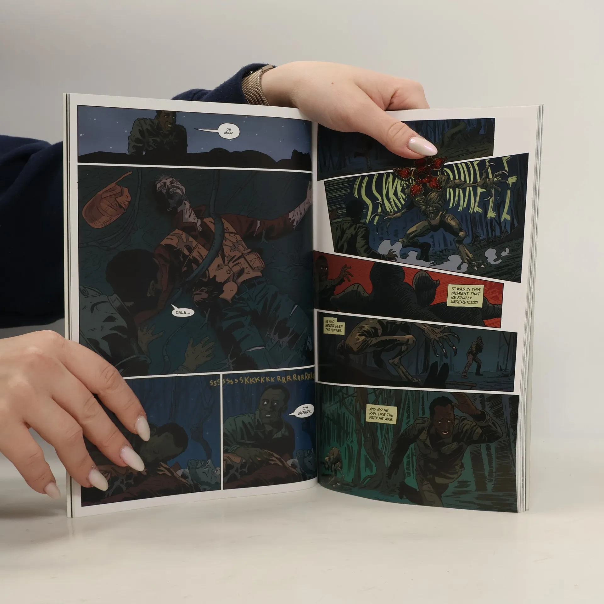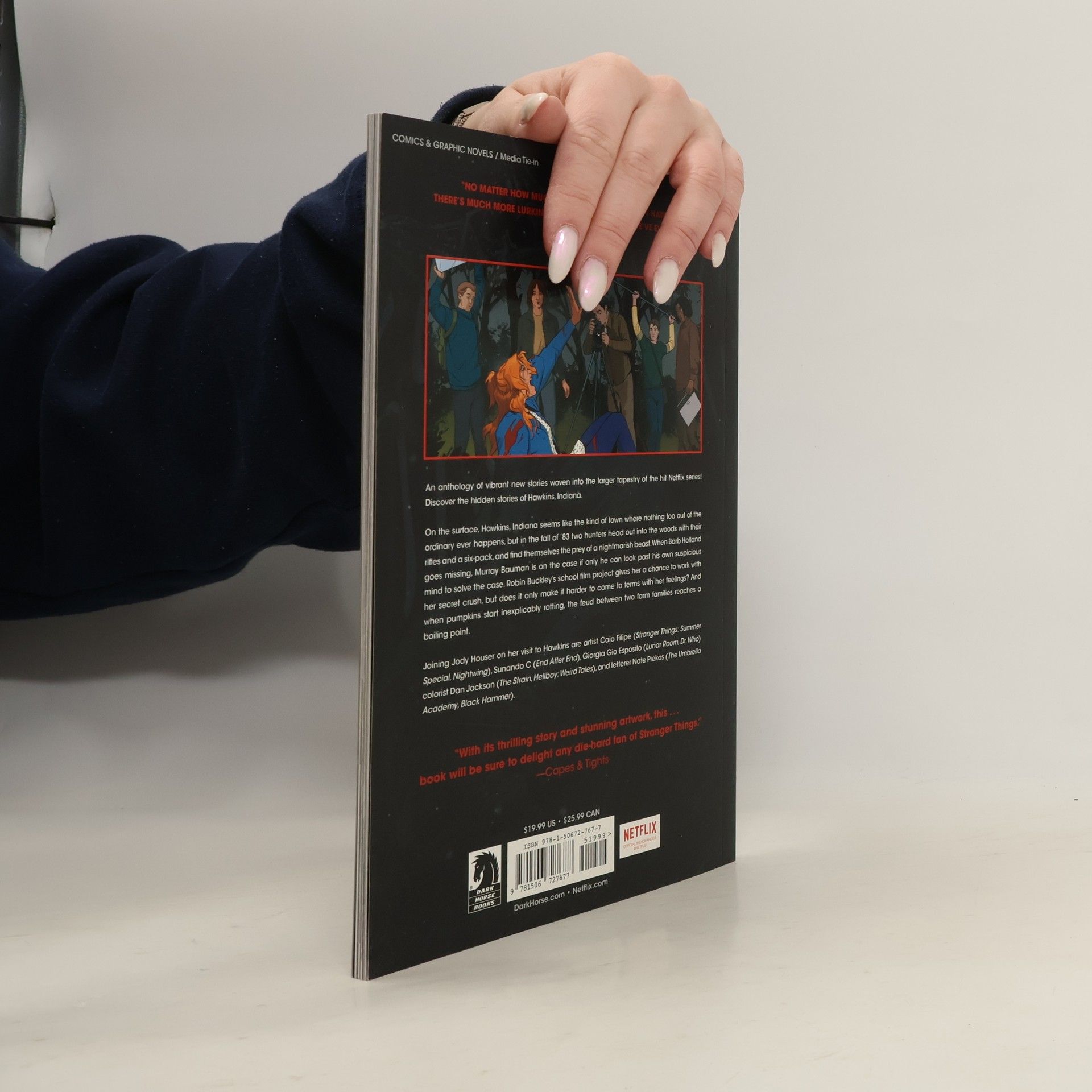 An anthology of vibrant new stories woven into the larger tapestry of the hit Netflix series! Discover the hidden stories from Hawkins, Indiana. On the surface, Hawkins, Indiana seems like the kind of town where nothing too out of the ordinary ever happens, but in the fall of ’83 two hunters head out into the woods with their rifles and a six-pack, and find themselves the prey of a nightmarish beast. When Barb Holland goes missing, Murray Bauman is on the case if only he can look past his own suspicious mind to solve the case. Robin Buckley’s school film project gives her a chance to work with her secret crush, but does it only make it harder to come to terms with her feelings? And when pumpkins start inexplicably rotting, the feud between two farm families reaches a boiling point. Joining Houser on her visit to Hawkins are artist Caio Filipe (Stranger Things: Summer Special, Nightwing), Sunando C (End After End), Giorgia Gio Esposito (Lunar Room, Dr. Who) colorist Dan Jackson (The Strain, Hellboy: Weird Tales), and letterer Nate Piekos (The Umbrella Academy, Black Hammer). Collects Stranger Things: Tales from Hawkins issues #1–#4.