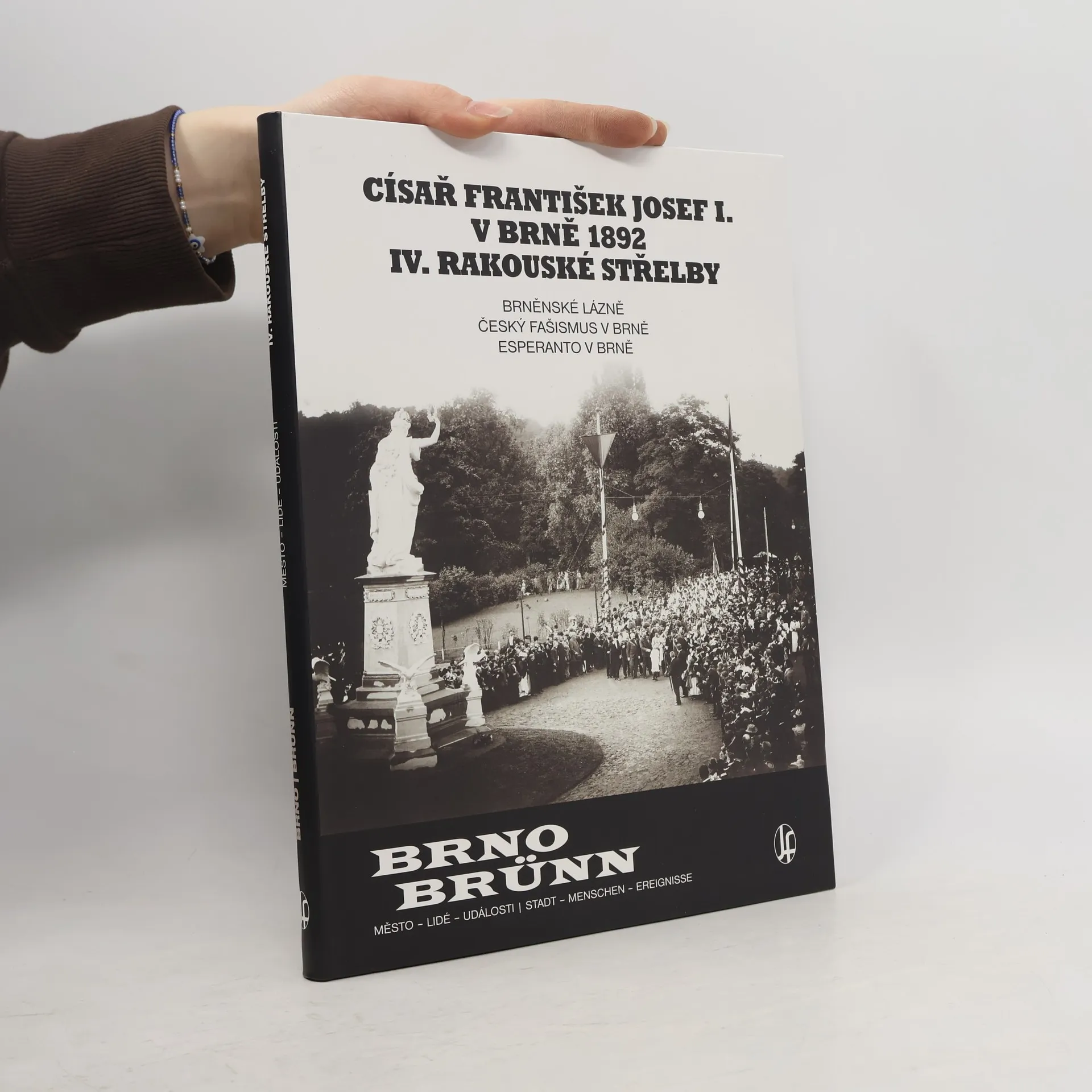 Hlavním tématem knihy jsou IV. rakouské střelby a návštěva císaře Františka Josefa I. v Brně v roce 1892. Slavnost, které se účastnili členové středních a vyšších vrstev, byla podtržena vysokou úrovní a alegorickými vozy. V Pisárkách probíhala střelecká soutěž, kde byly postaveny dočasné stavby, včetně restaurace pro tisíc návštěvníků a obrovské sochy. Tato událost vyvolala spory mezi Čechy a Němci, což císaře pohoršilo. Po jeho odjezdu byl zbaven funkce baron Pražák, brněnský ministr, který měl těmto excesům zabránit. Česko-německé spory se následně řešily soudy ve Vídni. V knize jsou zachyceny události v Brně na mnoha fotografiích. Dílčími tématy jsou Brněnské lázně, Český fašismus a Esperanto. Lázeňství, které na začátku 20. století hrálo důležitou roli ve společnosti, dnes ztrácí na významu. Český fašismus se v Brně projevoval v řadě událostí, včetně přepadení židenických kasáren, a zahrnoval organizace jako Národní obec fašistickou a Vlajku. Brno se také zapsalo do historie jako místo vzniku prvního esperantského klubu v Rakousko-Uhersku, což dokládají dokumenty a fotografie, které ukazují dlouhodobý zájem obyvatel o esperanto.