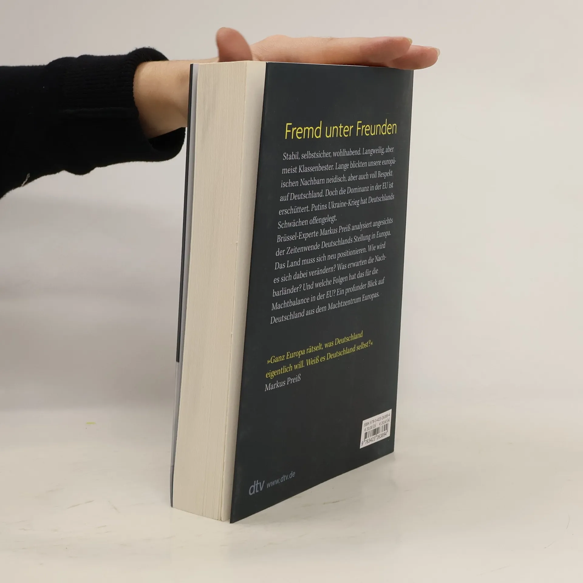 Deutschland – fremd unter Freunden »Ganz Europa rätselt, was Deutschland eigentlich will. Weiß es Deutschland selbst?« Markus Preiß Stabil, selbstsicher, wohlhabend. Langweilig, aber meist Klassenbester. Lange blickten unsere europäischen Nachbarn neidisch, aber voll Respekt auf Deutschland. Doch die Dominanz in der EU ist erschüttert. Putins Ukraine-Krieg hat Deutschlands Schwächen offengelegt: Wirtschaftlich anfällig, strategisch naiv und längst nicht so modern, wie wir denken. Brüssel-Experte Markus Preiß analysiert angesichts der Zeitenwende Deutschlands Stellung in Europa. Das Land muss sich neu positionieren. Wie wird es sich dabei verändern? Und wie die Machtbalance in der EU? Was Preiß abseits offizieller Termine von führenden Politikern und Insidern erfährt, fügt er zu einem klärenden Blick auf ein Land zusammen, das für Europas Zusammenhalt unverzichtbar ist.