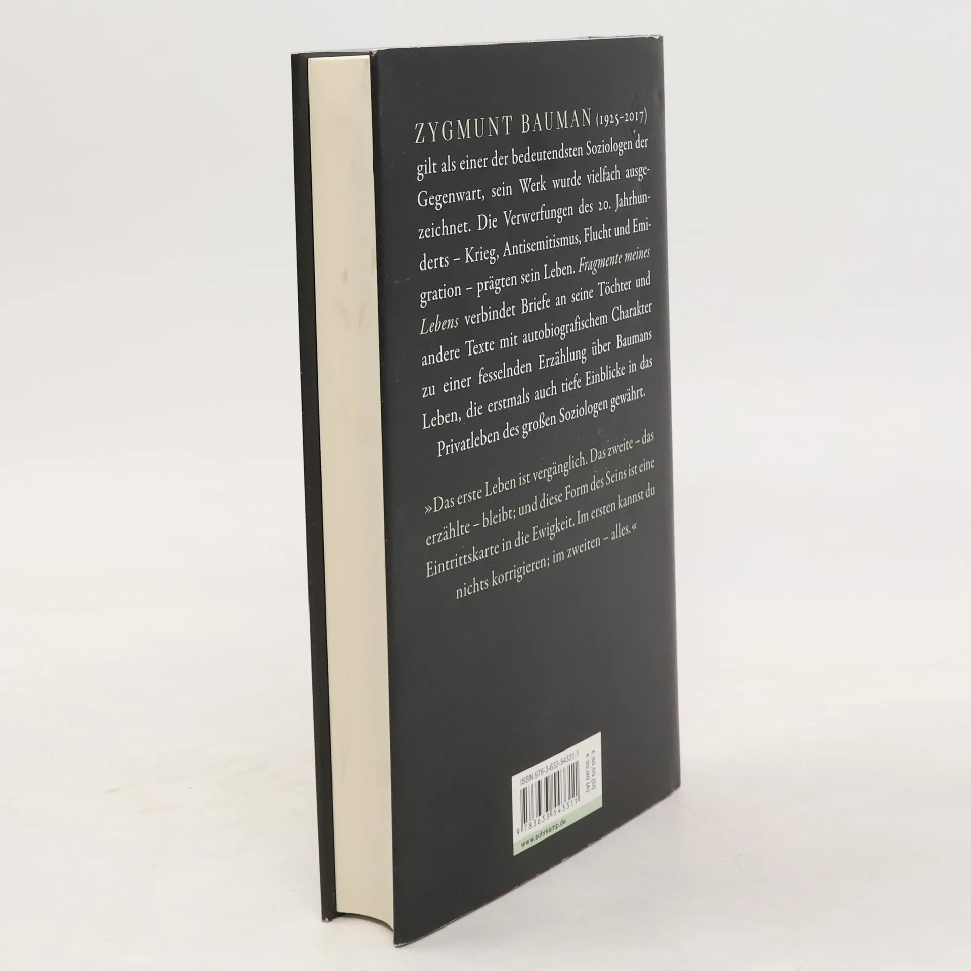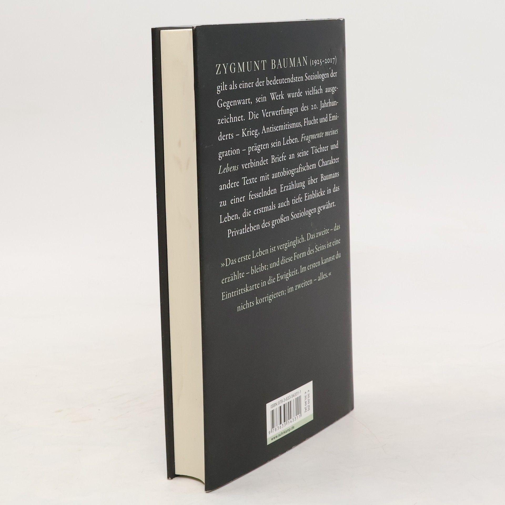 Zygmunt Bauman (1925–2017) gilt als einer der bedeutendsten Soziologen der Gegenwart, sein Werk wurde vielfach ausgezeichnet. Die Verwerfungen des 20. Jahrhunderts – Krieg, Antisemitismus, Flucht und Emigration – prägten sein Leben. Fragmente meines Lebens verbindet Briefe an seine Töchter und andere Texte mit autobiografischem Charakter zu einer fesselnden Erzählung über Baumans Leben, die erstmals auch tiefe Einblicke in das Privatleben des großen Soziologen gewährt. »Das erste Leben ist vergänglich. Das zweite – das erzählte – bleibt; und diese Form des Seins ist eine Eintrittskarte in die Ewigkeit. Im ersten kannst du nichts korrigieren; im zweiten – alles.«