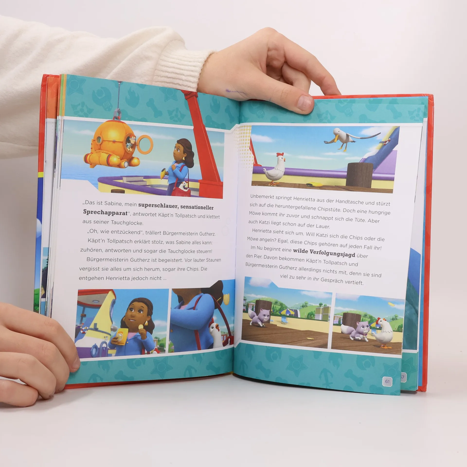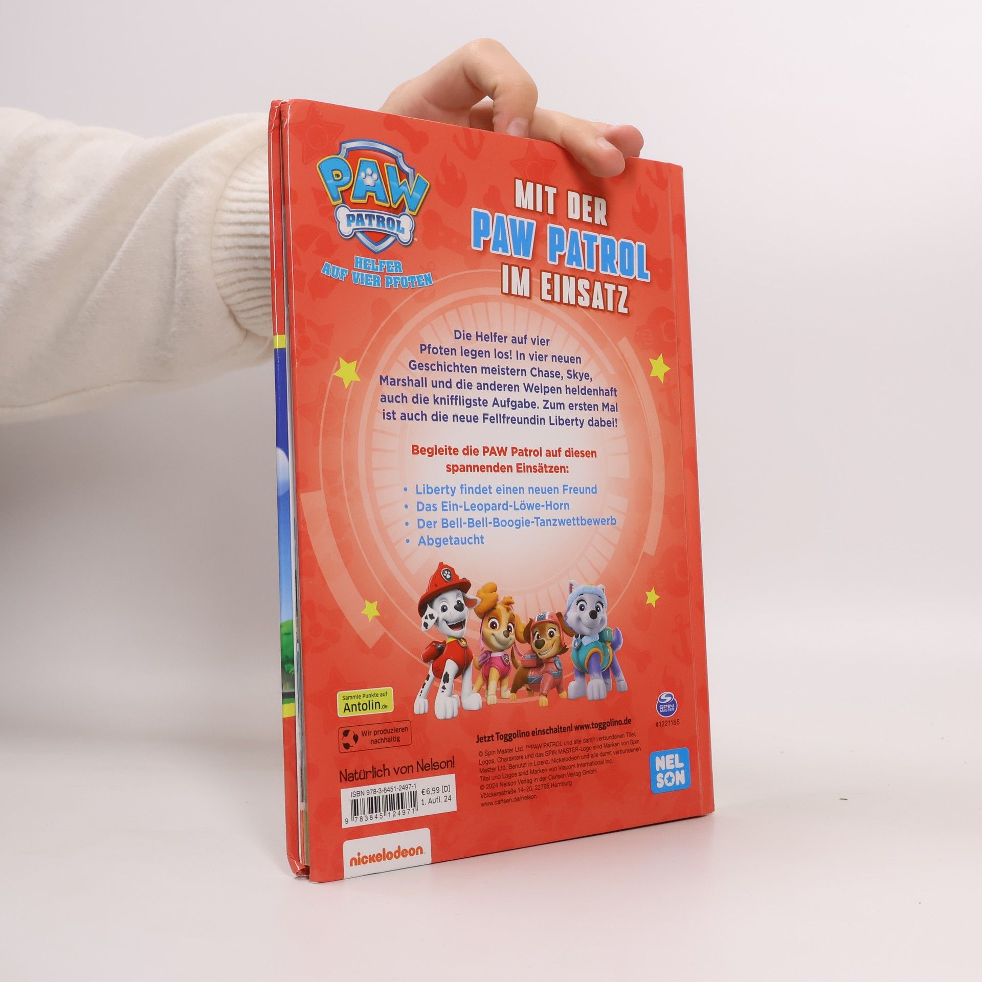 Die Helfer auf vier Pfoten sind bereit – mit neuen Geschichten und einer neuen Hündin! Vier spannende, lustige und kreative Einsätze der PAW Patrol warten auf die kleinen Fans: Die Welpen sichten ein ungewöhnliches Tier vor der Abenteuerbucht und retten Henrietta und Katzi bei einem Unterwassereinsatz. Zum ersten Mal ist auch die neue Hündin Liberty aus der Abenteuerstadt dabei! Sie findet einen neuen Bärenfreund in der Abenteuerbucht und nimmt am großen Tanzwettbewerb teil. Auf 80 Seiten gibt es vier ganz neu nacherzählte Geschichten der Fellfreunde mit vielen Bildern aus den TV-Folgen. Die Geschichten basieren auf den Episoden der beliebten Fernsehserie auf Super RTL. Diese 4 Rettungseinsätze finden sich im Buch: Liberty findet einen neuen Freund Das Ein-Leopard-Löwe-Horn Der Bell-Bell-Boogie-Tanzwettbewerb Abgetaucht!