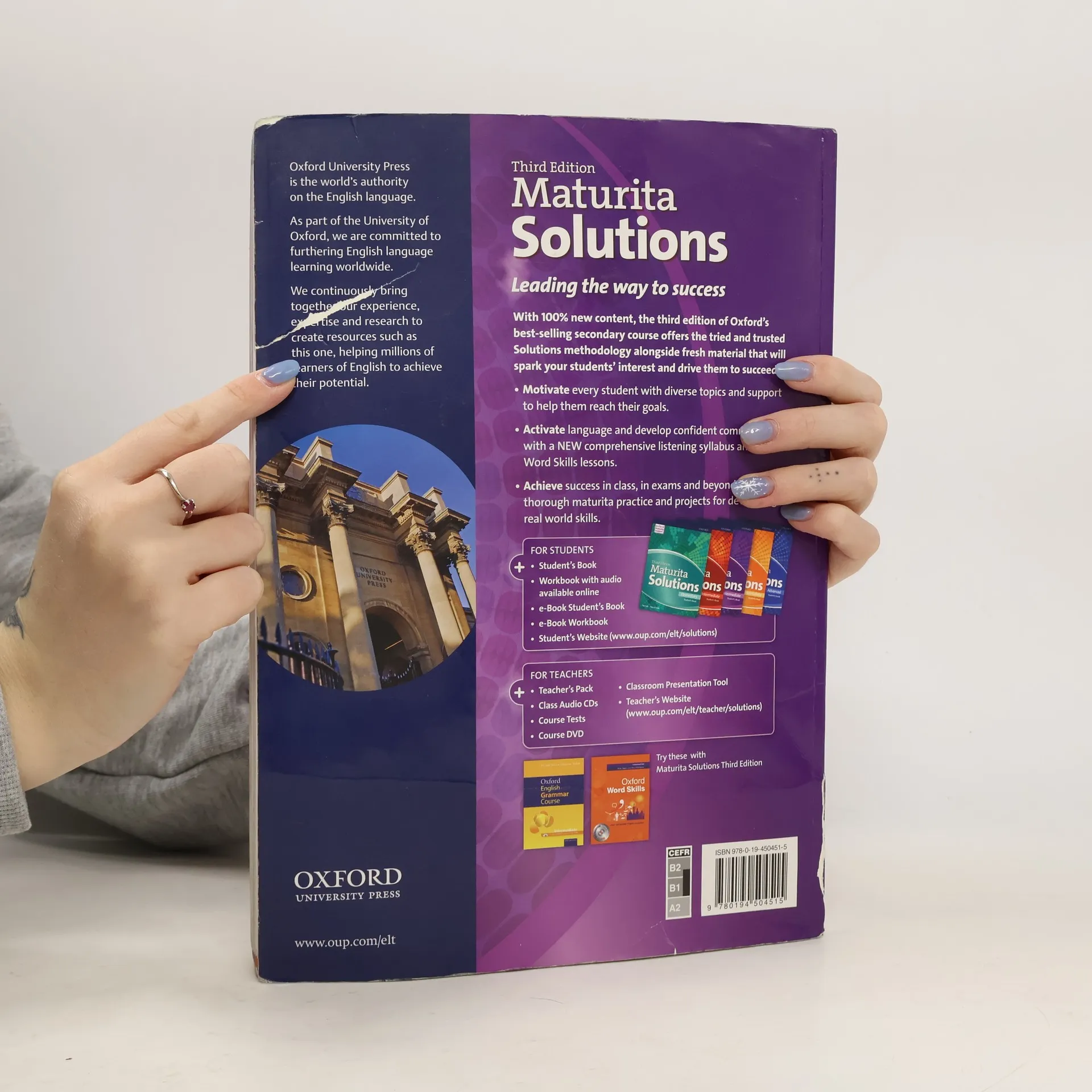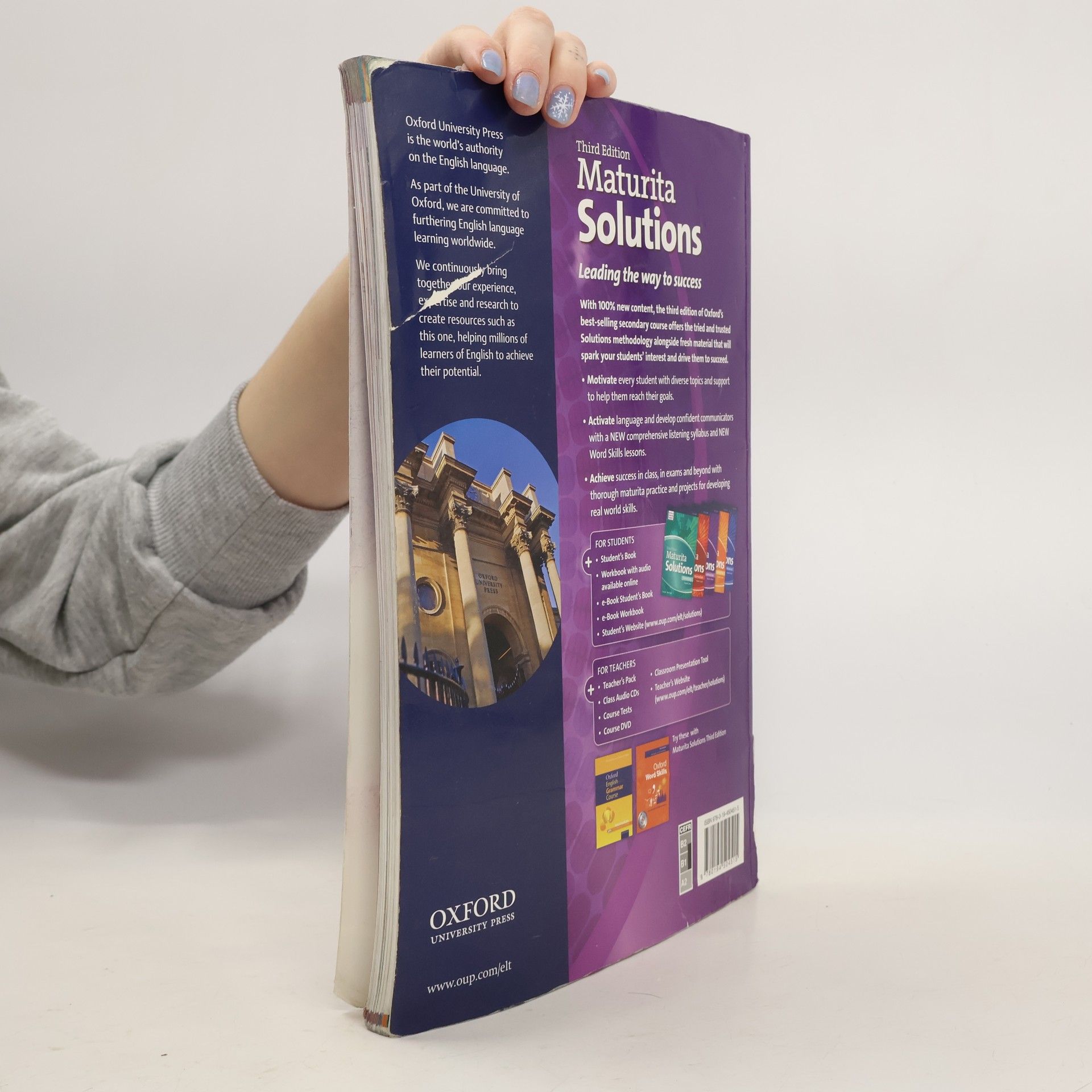 With 100% new content, the third edition of Oxford's best-selling secondary course offers the tried and trusted Solutions methodology alongside fresh and diverse material that will spark your students' interest and drive them to succeed.The Solutions Student's Book is packed full of interesting content to keep students of all abilities fully engaged and motivated.Each unit consists of eight lessons, all of which focus on a particular skill, including vocabulary, grammar, reading, speaking, and writing. New to the third edition are specific listening and word skills lessons, to help develop well-rounded, confident communicators.Additional resources, including exam skills trainer sections and extra speaking practice help consolidate what students have covered in the lessons. The supported approach to speaking, writing and exam practice ensure every student can achieve success.