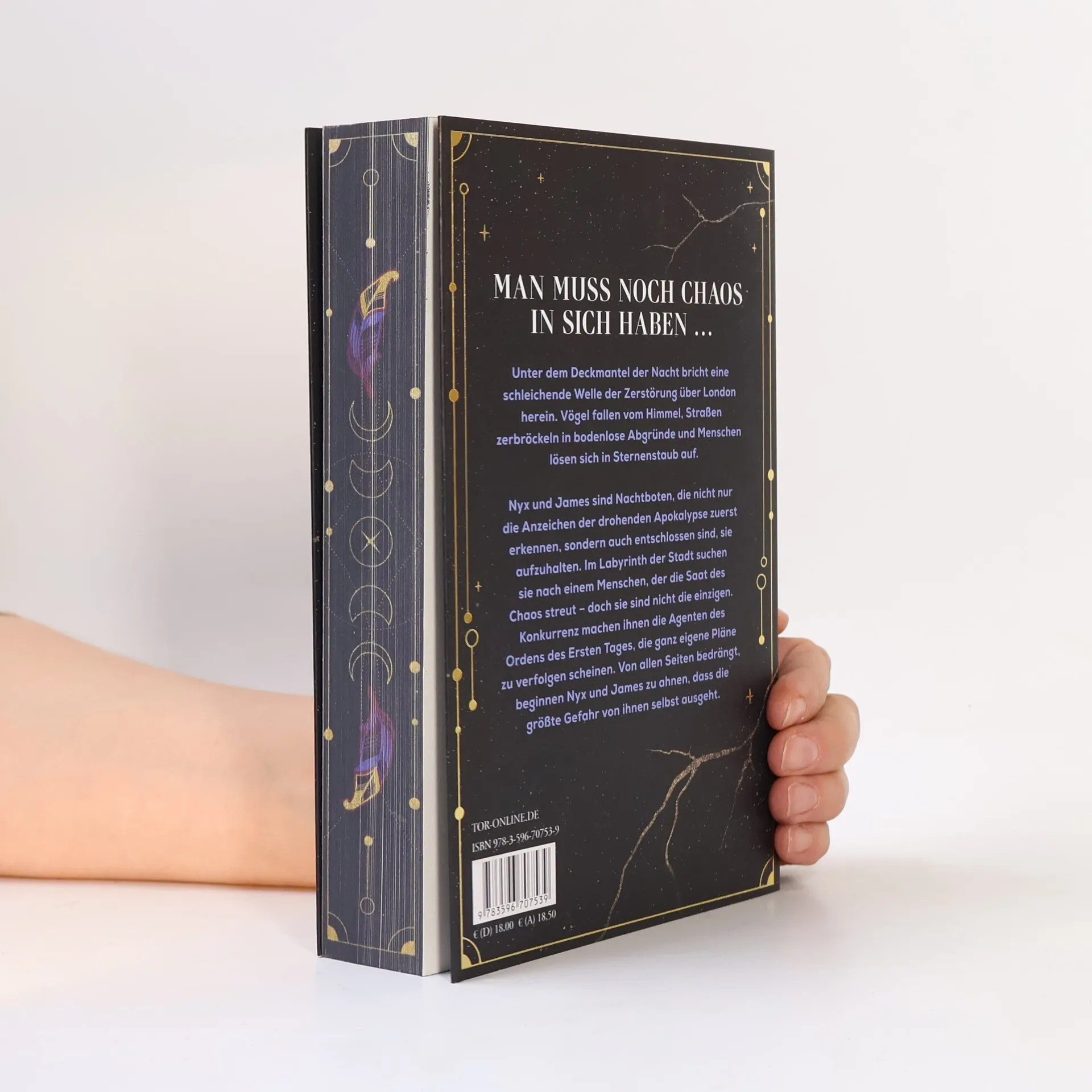 Magische Urban Fantasy in London über den Kampf gegen das Chaos – und die Suche nach dem eigenen Selbst Unter dem Deckmantel der Nacht bricht eine schleichende Welle der Zerstörung über London herein. Vögel fallen vom Himmel, Straßen zerbröckeln in bodenlose Abgründe und Menschen lösen sich in Sternenstaub auf. Nyx und James sind Nachtboten, die nicht nur die Anzeichen der drohenden Apokalypse zuerst erkennen, sondern auch entschlossen sind, sie aufzuhalten. Im Labyrinth der Stadt suchen sie nach einem Menschen, der die Saat des Chaos streut – doch sie sind nicht die einzigen. Konkurrenz machen ihnen die Agenten des Ordens des Ersten Tages, die ganz eigene Pläne zu verfolgen scheinen. Von allen Seiten bedrängt beginnen Nyx und James zu ahnen, dass die größte Gefahr von ihnen selbst ausgeht. Für Leser*innen von Leigh Bardugo, Liza Grimm oder V.E. Schwab.