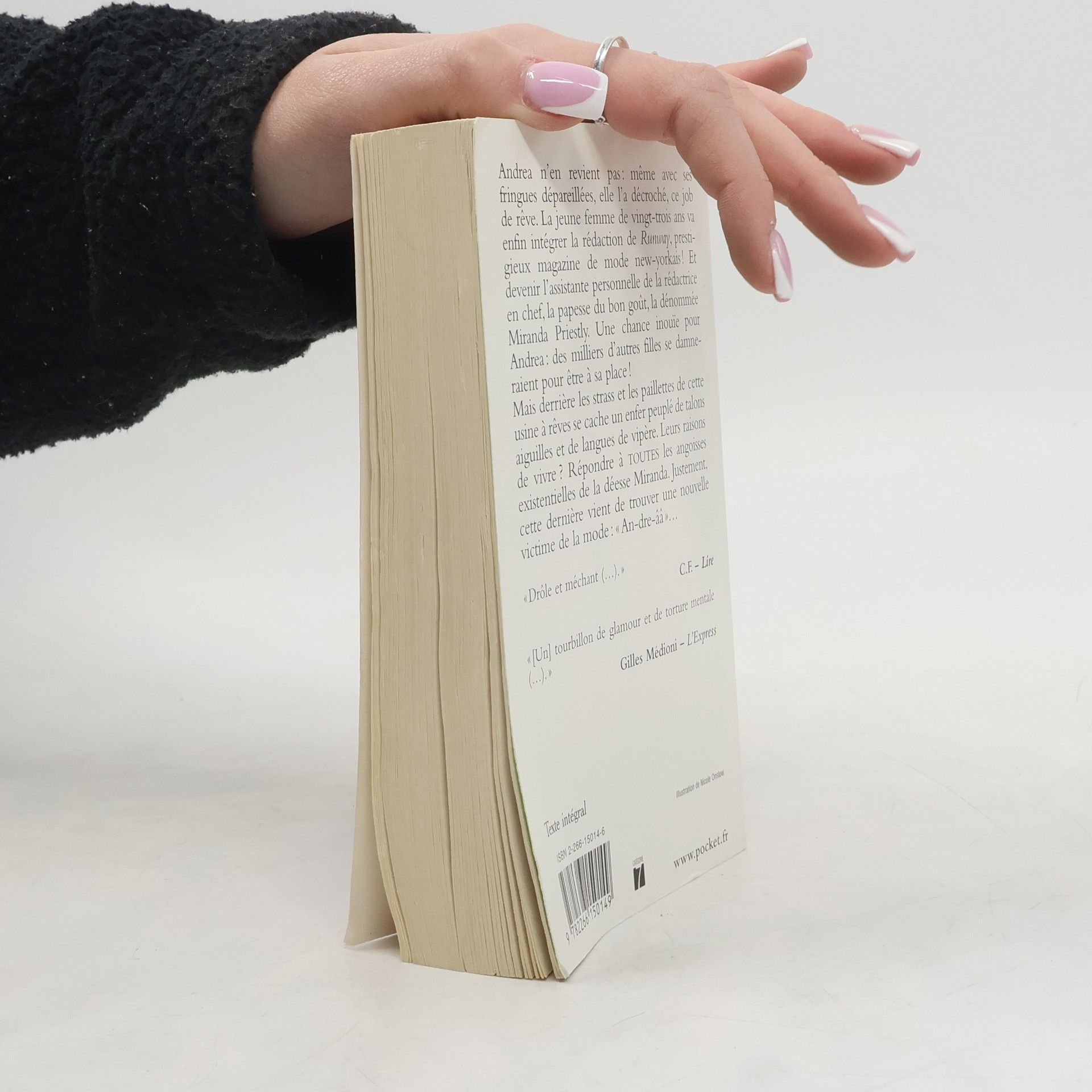 La 4e de couverture indique: "Andréa n'en revient pas: même avec ses fringues dépareillées, elle l'a décroché, ce job de rêve. A vingt-trois ans, elle va intégrer la rédaction de Runway, prestigieux magazine de mode new-yorkais! Et devenir l'assistante personnelle de la rédactrice en chef, la papesse du bon goût: Miranda priestly. Une chance inouïe. Mais derrière les strass et les paillettes de cette usine à rêves se cache un enfer peuplé de talons aiguilles et de langues de vipère..."
