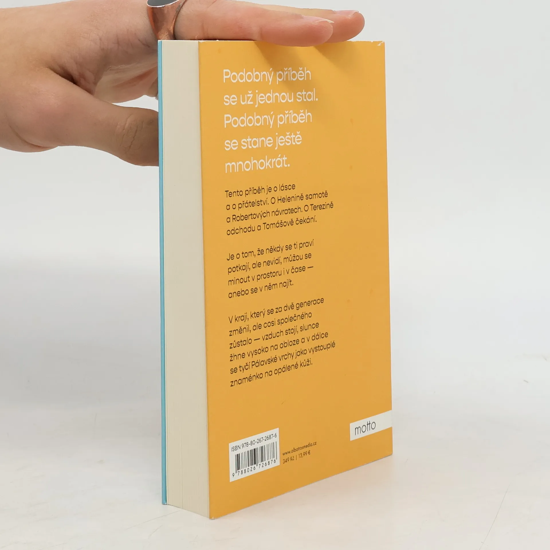 Tento příběh je o lásce a o přátelství. O Helenině samotě a Robertových návratech. O Terezině odchodu a Tomášově čekání. Je o tom, že někdy se ti praví potkají, ale nevidí, můžou se minout v prostoru i v čase – anebo se v něm najít. V kraji, který se za dvě generace změnil, ale cosi společného zůstalo – vzduch stojí, slunce žhne vysoko na obloze a v dálce se tyčí Pálavské vrchy jako vystouplé znaménko na opálené kůži.