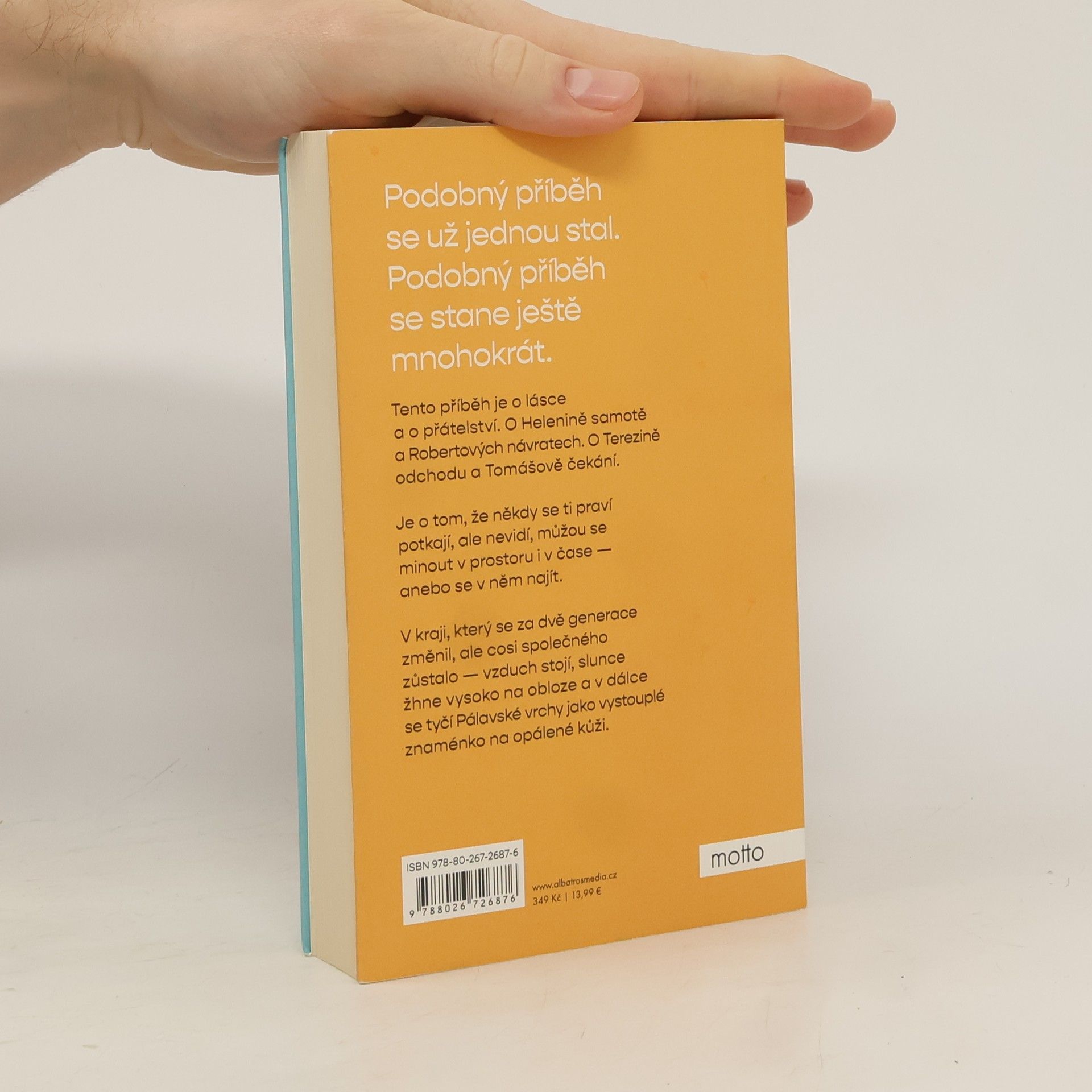 Tento příběh je o lásce a o přátelství. O Helenině samotě a Robertových návratech. O Terezině odchodu a Tomášově čekání. Je o tom, že někdy se ti praví potkají, ale nevidí, můžou se minout v prostoru i v čase – anebo se v něm najít. V kraji, který se za dvě generace změnil, ale cosi společného zůstalo – vzduch stojí, slunce žhne vysoko na obloze a v dálce se tyčí Pálavské vrchy jako vystouplé znaménko na opálené kůži.