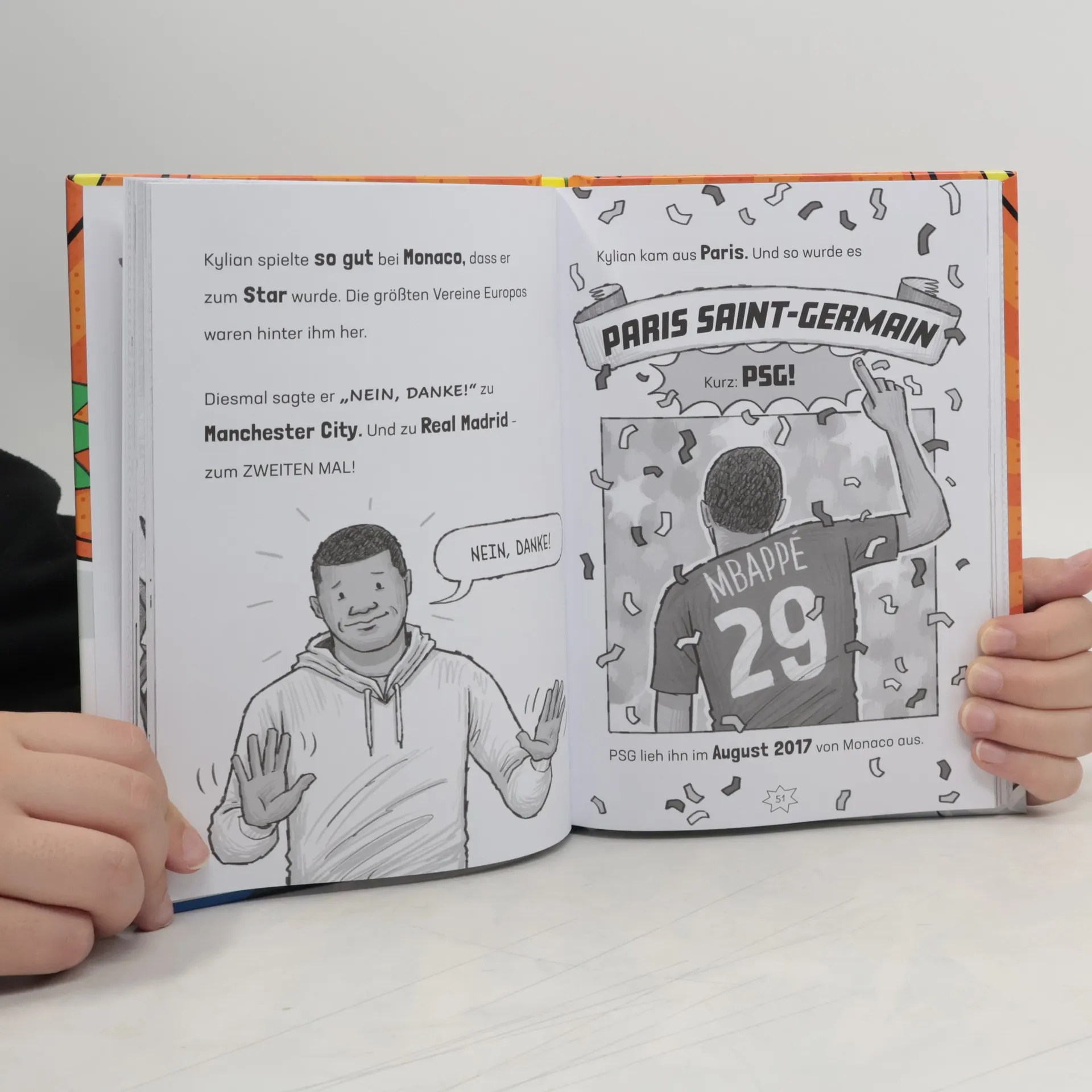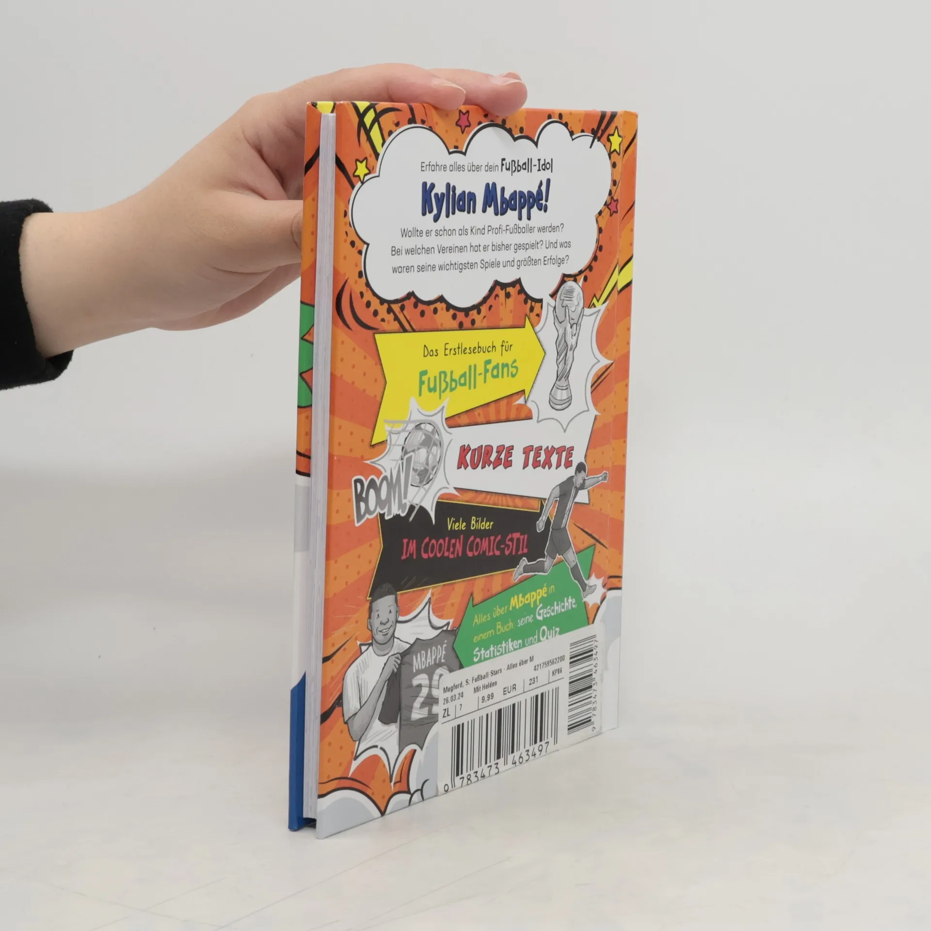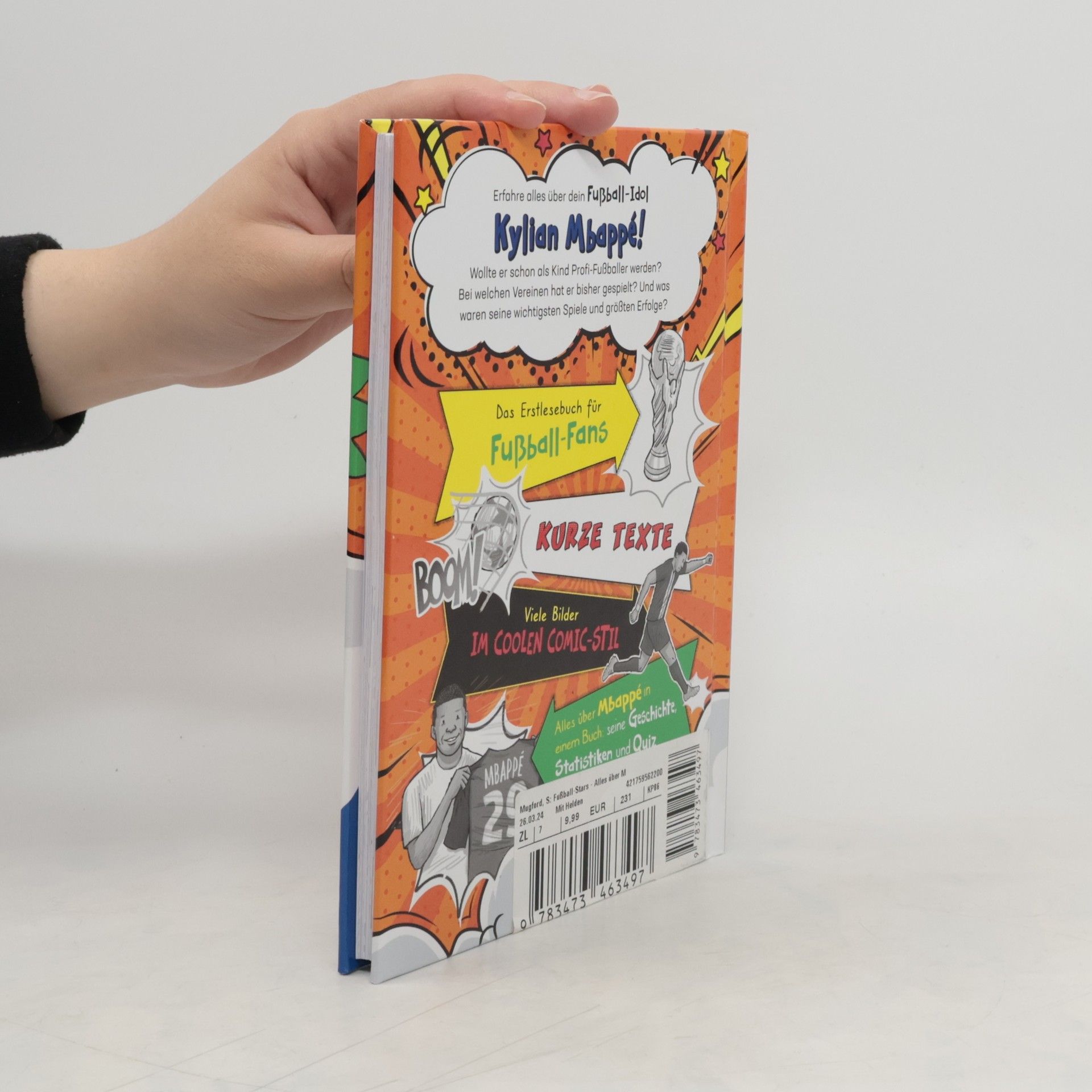 Alles über Mbappé: Träume, Tore, Titel Das perfekte Fußball-Geschenk für Jungen und Mädchen, die gar nicht genug Wissen über Mbappé sammeln können. In einer Geschichte lesen sie alles über seinen Weg vom kickenden Jungen bis zum Weltmeister: Wollte er immer Profifußballer werden? Bei welchen Vereinen hat er gespielt? Und was waren seine wichtigsten Spiele und Tore? In kindgerechten Statistiken können sie Spannendes über ihr Fußballidol lernen und sich im Mbappé-Quiz testen. So wird Lesenlernen zum Volltreffer! In dieser Erstlesereihe rund um große Fußballstars können Jungen und Mädchen ab 7 Jahren alles über ihre Fußballidole lesen. Kurze Texte und viele Bilder im coolen Comic-Stil sprechen Kinder in der 2. und 3. Klasse an – egal, ob Leseratte oder lesefaul. So lässt sich Fußball und Lesen lernen vereinen! DAS Fußball-Geschenk zu Ostern, Weihnachten oder zum Geburtstag. Für weiteren Lesespaß in dieser Reihe sorgen bisher die Bücher über Haaland, Ronaldo und Lewandowski.