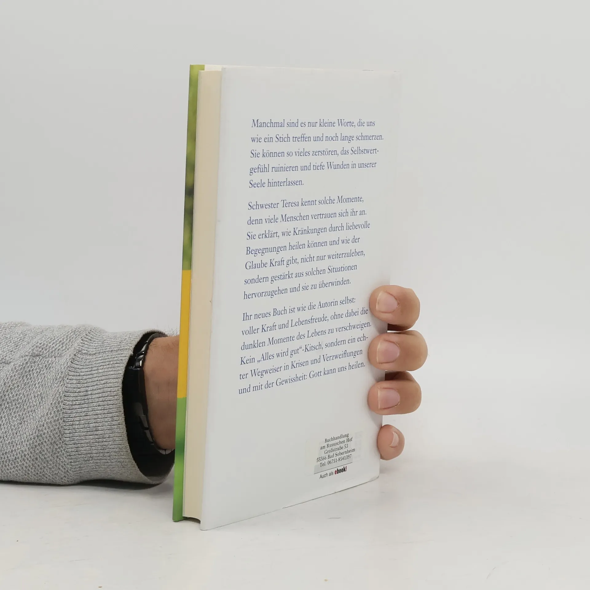 Jeden Tag bekommt Schwester Teresa Briefe und Botschaften von Menschen, die um Rat fragen oder Trost suchen. Auch bei ihren Vorträgen trifft sie auf Personen, die von Verletzungen und Enttäuschungen erzählen. In ihrem neuen Buch schreibt Schwester Teresa über solche Momente und wie sie anderen hilft, damit umzugehen. Sie erklärt, wie Verletzungen durch die Begegnung und das Gespräch heilen können und wie der Glaube Kraft gibt, nicht nur weiterzuleben, sondern gestärkt aus solchen Situationen hervorzugehen. Ihr neues Buch ist wie die Autorin selbst: voller Kraft und Lebensfreude, ohne dabei die dunklen Momente des Lebens zu verschweigen. Kein Alles wird gut-Kitsch, sondern echte Wegweiser in Krisen und Verzweiflungen und mit der Gewissheit: Gott kann uns heilen.