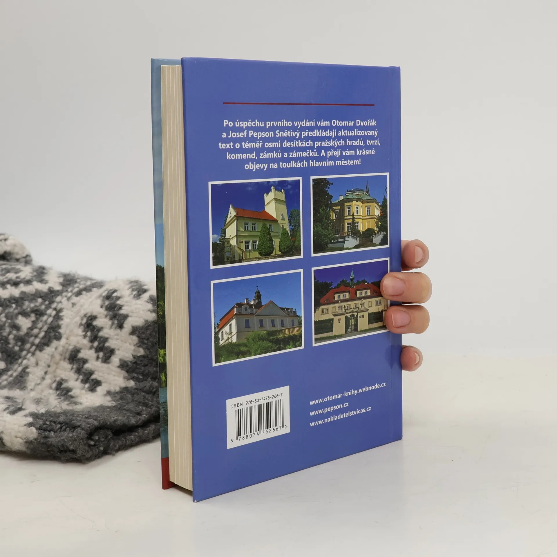 Autoři vás už podruhé společně zvou na cestu. Tentokrát (až na výjimky) „jen“ na území hlavního města Prahy, jež je zdánlivě dopodrobna prozkoumané a popsané. Oba Prahu milují, pobývají v ní a dlouhodobě se její historií a památkami zabývají – a přesto i je překvapilo, kolik toho v tomto ohledu ještě nabízí… a skrývá. Zmapovali pro vás téměř osm desítek tvrzí, hradů, komend, zámků a zámečků. Několik málo jich bohužel mohli pouze nastínit, a zbytek už je na vaší fantazii, neboť se jedná o sídla, po nichž nezůstal žádný hmatatelný pozůstatek. Většinu však (mnohdy opakovaně) navštívili, propátrali a vyfotografovali, hledali v literatuře i archivech, ptali se místních… a občas nalezli netušené souvislosti, odkryli nepatrné zbytky nebo zůstali v údivu stát před nenápadným půvabem místa, které – stejně jako většina lidí – léta míjeli bez povšimnutí… Autoři záměrně opominuli jen Pražský hrad a Vyšehrad coby místa dostatečně popsaná v jiných publikacích. A budou velmi rádi, pokud s touto knihou (či jen s informacemi z ní vyčtenými ve vaší paměti) vyrazíte do ulic naší metropole. Odměnou vám budou nečekané nálezy a nezapomenutelné momenty.