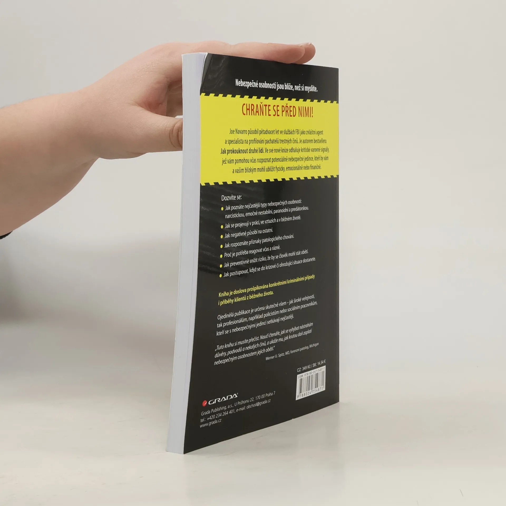 Jak je odhalit a chránit se před nimi. Jak rozpoznat nebezpečné osobnosti kolem nás? Autor, bývalý agent FBI, ve své knize přibližuje nejčastější typy nebezpečných osobností — narcistickou, emočně nevyrovnanou, paranoidní a predátorskou — a ukazuje, jak včas zareagovat. Nebezpečné osobnosti jsou blíže, než si myslíte. Chraňte se před nimi!