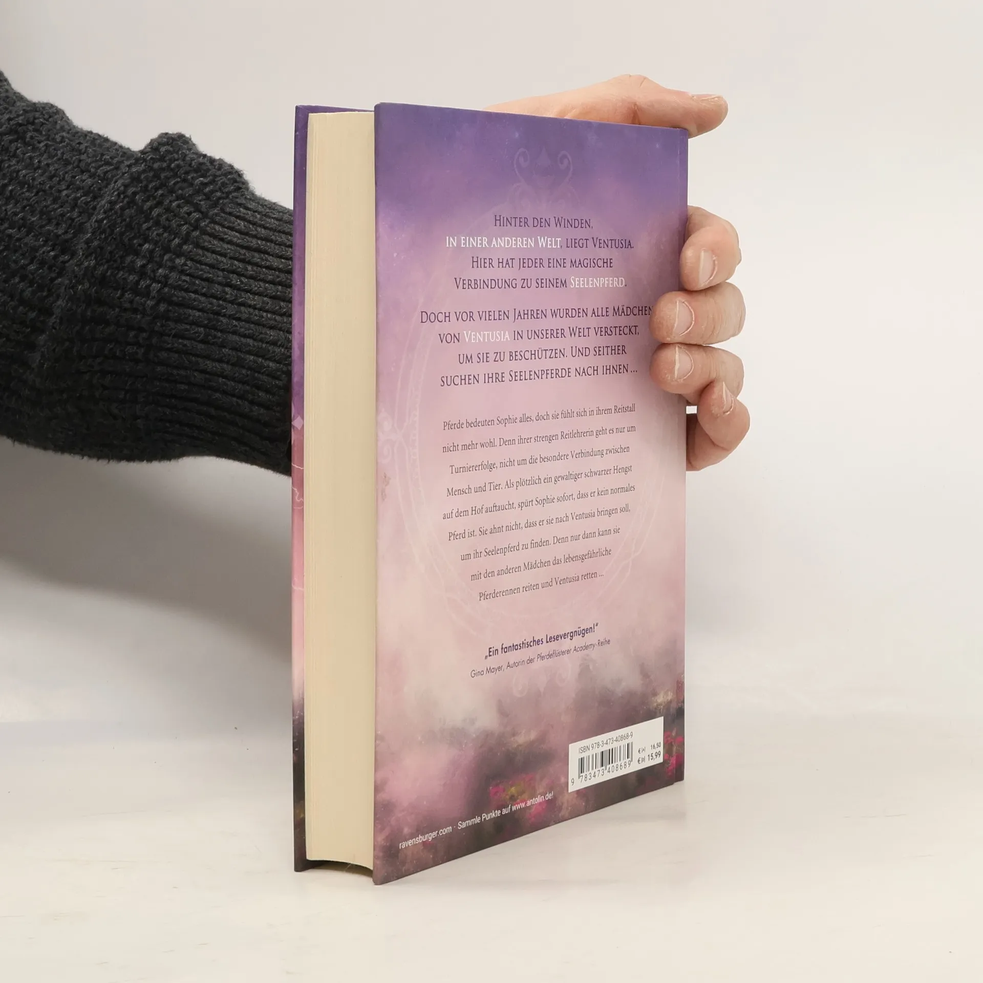 Hinter den Winden, in einer anderen Welt, liegt Ventusia. Hier hat jeder eine magische Verbindung zu seinem Seelenpferd. Doch vor vielen Jahren wurden alle Mädchen von Ventusia in unserer Welt versteckt, um sie zu beschützen. Und seither suchen ihre Seelenpferde nach ihnen … Pferde bedeuten Sophie alles, doch sie fühlt sich in ihrem Reitstall nicht mehr wohl. Ihrer strengen Reitlehrerin geht es nur um Turniererfolge, nicht um die besondere Verbindung zwischen Mensch und Tier. Als ein schwarzer Hengst auf dem Hof auftaucht, spürt Sophie sofort, dass er kein normales Pferd ist. Sie ahnt nicht, dass er sie nach Ventusia bringen soll, um ihr Seelenpferd zu finden. Denn nur so kann sie mit den anderen Mädchen das lebensgefährliche Pferderennen reiten und Ventusia retten. Die abenteuerliche Pferde-Fantasy-Reihe von Dein-SPIEGEL-Bestsellerautorin Jennifer Benkau "Ein fantastisches Lesevergnügen!“ Gina Mayer, Autorin der „Pferdeflüsterer Academy“-Reihe Entdecke die komplette Reihe: Band 1: Windprinzessin Band 2: Wüstentochter Band 3: Sturmmädchen Band 4: Himmelskind