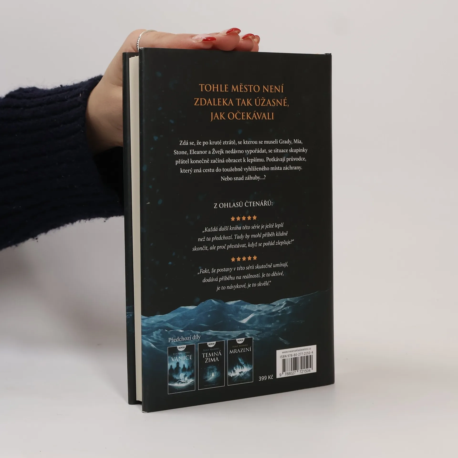 Kde je světlo, tam je naděje. Hrdinům příběhu se konečně podařilo uniknout z Woodhavenu, kde na konci předchozího dílu přišli za dramatických okolností o Mikeyho. Přeživší teď svádí souboj s časem, aby stihli dopravit Miu do Města světla předtím, než začne rodit. Cestou potkávají někdejšího obyvatele Města. Navzdory počáteční nedůvěře, způsobené událostmi z Woodhavenu, se díky jeho pomoci a vedení zdá, že pro Gradyho a jeho přátele Miu, Stonea, Eleanor a Žvejka nastávají lepší časy. Mohou ale novému neznámému věřit? A je Město světla pořád tím majákem naděje, jakým kdysi bývalo? Všechno začíná vypadat slibně. Jenže přízraky, temnota a neustávající sněhová bouře mají jiné plány. Město světla je čtvrtým svazkem série Bílá tma, jejíž předchozí díly (Vánice, Temná zima a Mrazení) jsou rovněž k dispozici v českém překladu.