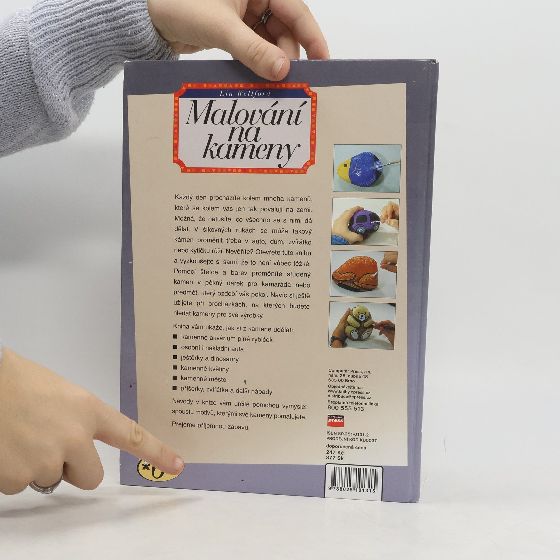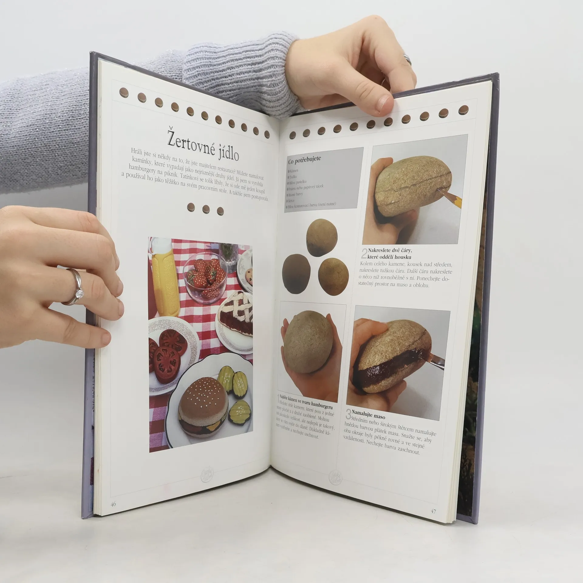 Na začátku knihy jsou uvedeny všeobecné informace týkající se práce s kameny, potřebné pomůcky a rady. Druhá část je věnována jednotlivým malovaným motivům, jako jsou ještěrky, autíčka, potraviny a nebo květiny. Každá fáze pracovního postupu je pomocí fotografií detailně popsána.