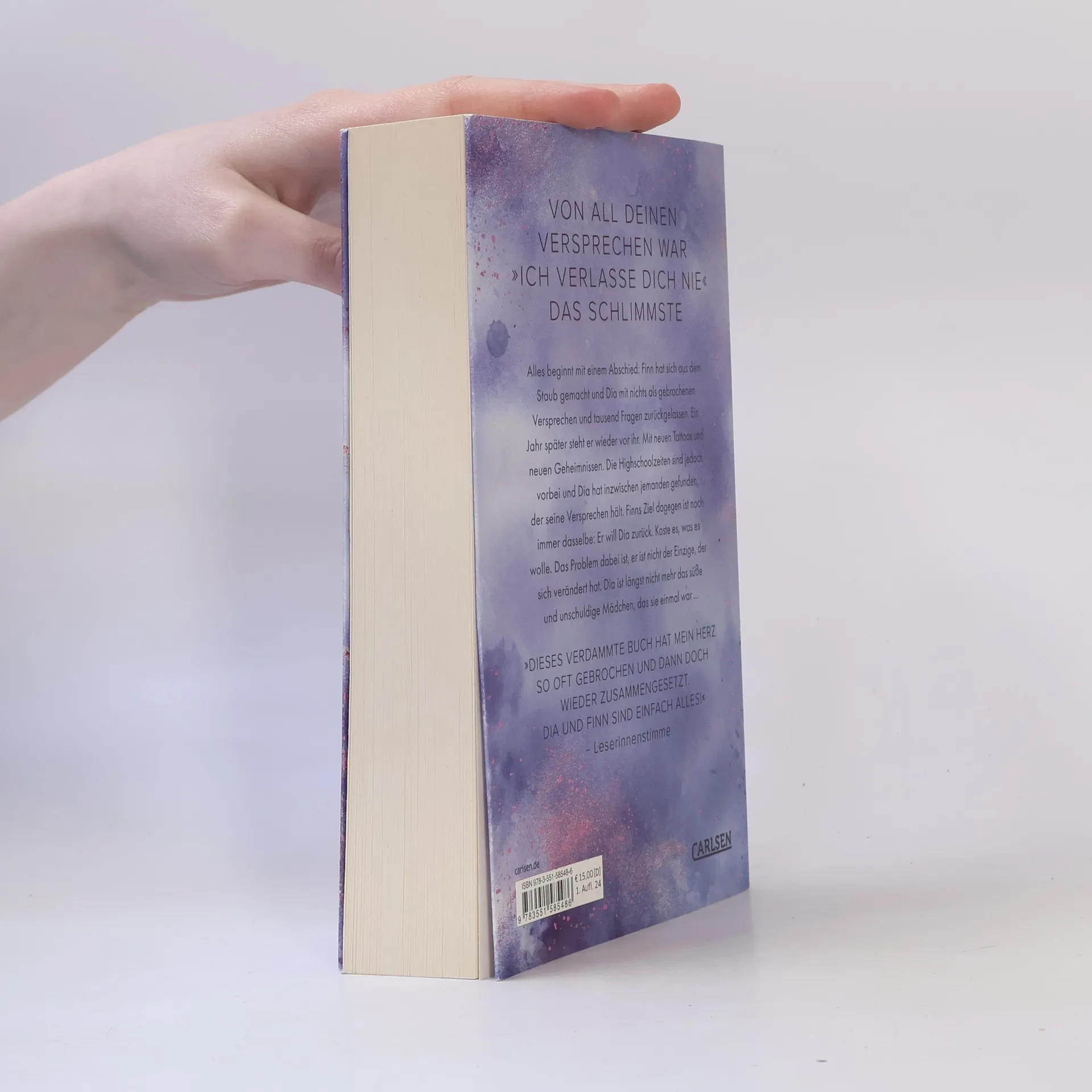 Von all deinen Versprechen war »Ich verlasse Dich nie« das schlimmste Alles beginnt mit einem Abschied: Finn hat die Stadt verlassen und Dia mit nichts als gebrochenen Versprechen und tausend Fragen zurückgelassen. Ein Jahr später steht er wieder vor ihr. Mit neuen Tattoos und neuen Geheimnissen. Die Highschoolzeiten sind jedoch vorbei und Dia hat inzwischen jemanden gefunden, der seine Versprechen hält. Finns Ziel ist noch immer dasselbe: Er will Dia zurück. Koste es, was es wolle. Das Problem dabei ist, er ist nicht der Einzige, der sich verändert hat. Dia ist längst nicht mehr das süße und unschuldige Mädchen, das sie einmal war … Das intensive und emotionale Finale von Dia & Finn. Als wunderschön veredelte Klappenbroschur mit Naturpapier und Glitzereffekt. //Dies ist der dritte Band der mitreißenden Enemies to Lovers Romance »Easton High«. Alle Romane der fesselnden New Adult Reihe: -- Band 1: Dear Love I Hate You -- Band 2: Dear Heart I Hate You -- Band 3: Dear Heart I Miss You// Diese Reihe ist abgeschlossen.