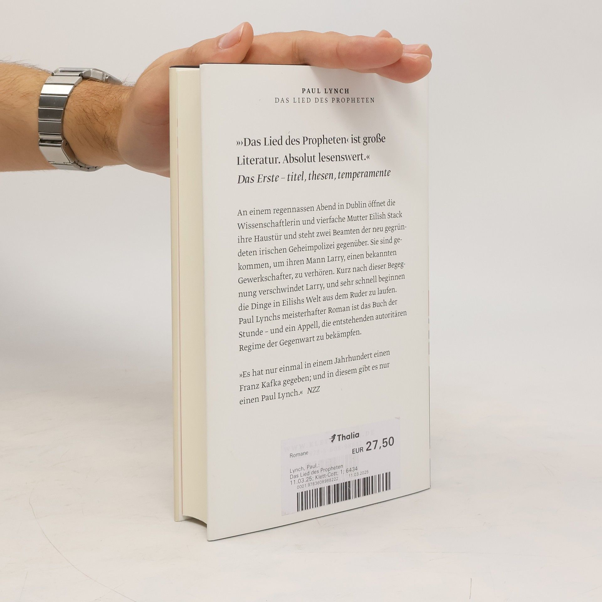 An einem regennassen Abend in Dublin öffnet die Wissenschaftlerin und vierfache Mutter Eilish Stack ihre Haustür und steht zwei Beamten der neu gegründeten irischen Geheimpolizei gegenüber. Sie sind gekommen, um ihren Mann Larry, einen bekannten Gewerkschafter, zu verhören. Kurz nach dieser Begegnung verschwindet Larry, und sehr schnell beginnen die Dinge in Eilishs Welt aus dem Ruder zu laufen.Irland befindet sich in der Gewalt einer Regierung, die auf dem Weg in die Tyrannei ist. Eilish findet sich in der alptraumhaften Logik einer kollabierenden Gesellschaft wieder, angegriffen von unsichtbaren Kräften, die sich ihrer Kontrolle entziehen. Sie ist gezwungen, alles zu tun, um ihre Familie zu schützen und alle zusammenzuhalten. Wie soll sie ihren Kindern erklären, was passiert ist, wenn sie nach dem Vater fragen? Wie wird ihr eigener zunehmend dementer Vater auf die gravierenden Veränderungen seines Alltags reagieren? Und wie weit wird Eilish selbst gehen, um sich und ihre Familie zu retten? »Das Lied des Propheten« ist ein atemloses Porträt einer Familie am Rande der Katastrophe, das stilistisch und emotional seinesgleichen sucht. Paul Lynchs meisterhafter Roman ist das Buch der Stunde – und ein Appell, die entstehenden autoritären Regime der Gegenwart zu bekämpfen.