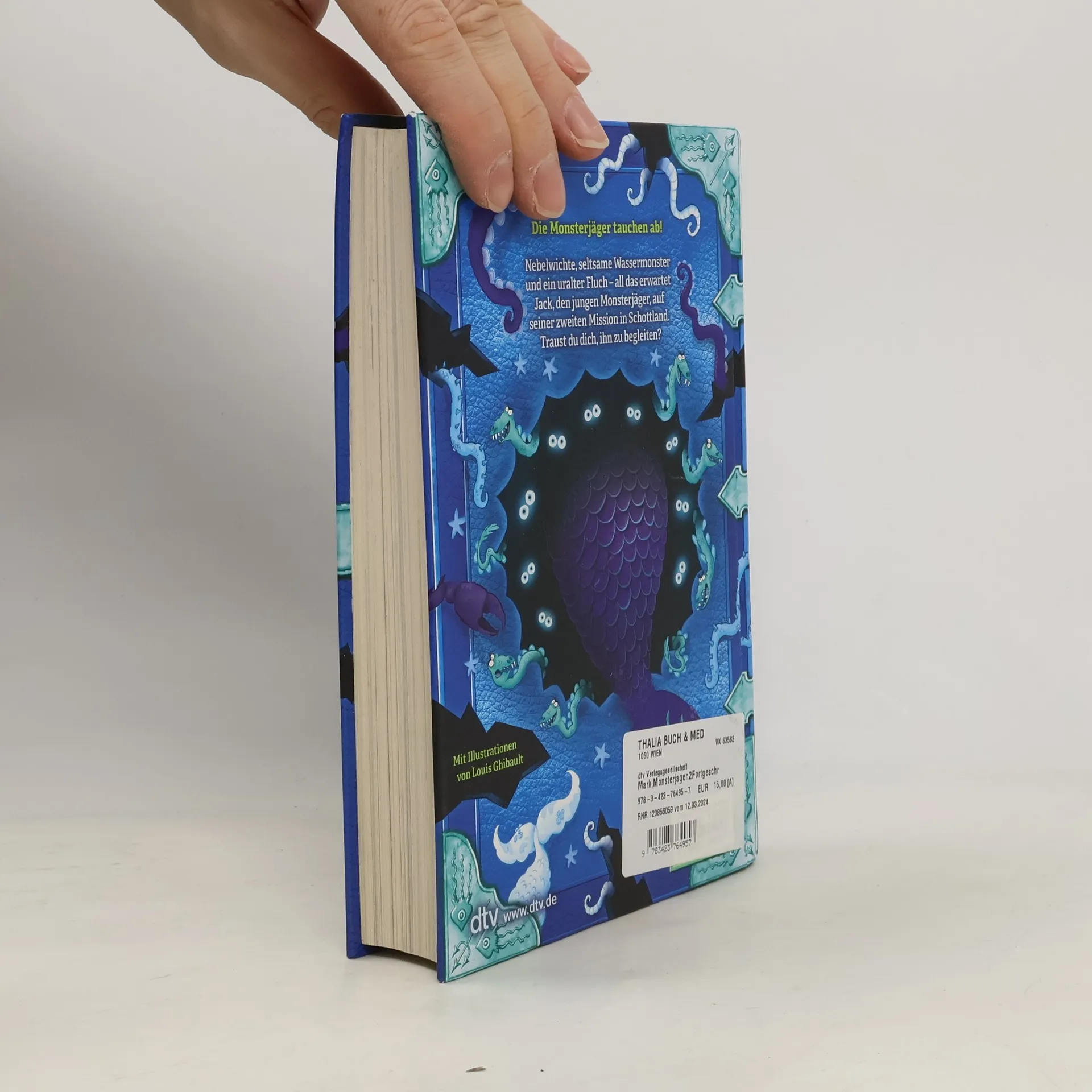 Ein zweiter Auftrag für die Monsterjäger! Wenn Monster sich danebenbenehmen, müssen Monsterjäger ihnen das Handwerk legen (und entsprechende Umerziehungsmaßnahmen einleiten). Dass das nicht immer so einfach ist, erfahren Jack, seine beste Freundin Nancy und Stoop, der mürrische alte Monsterjäger, in ihrem zweiten Abenteuer. Sie machen sich auf den Weg nach Schottland, wo mysteriöse Monster in einer alten Abtei für Chaos sorgen. Doch als sie dort ankommen, stellen sich ihnen einige Hindernisse in den Weg - in Form von Nebelkobolden, verärgerten Geistern, einigen sehr seltsamen Wassermonstern und sogar einer rivalisierenden Monsterjägeragentur. Oh, und dann ist da noch ein alter Fluch, der das Ende der Welt bedeutet!