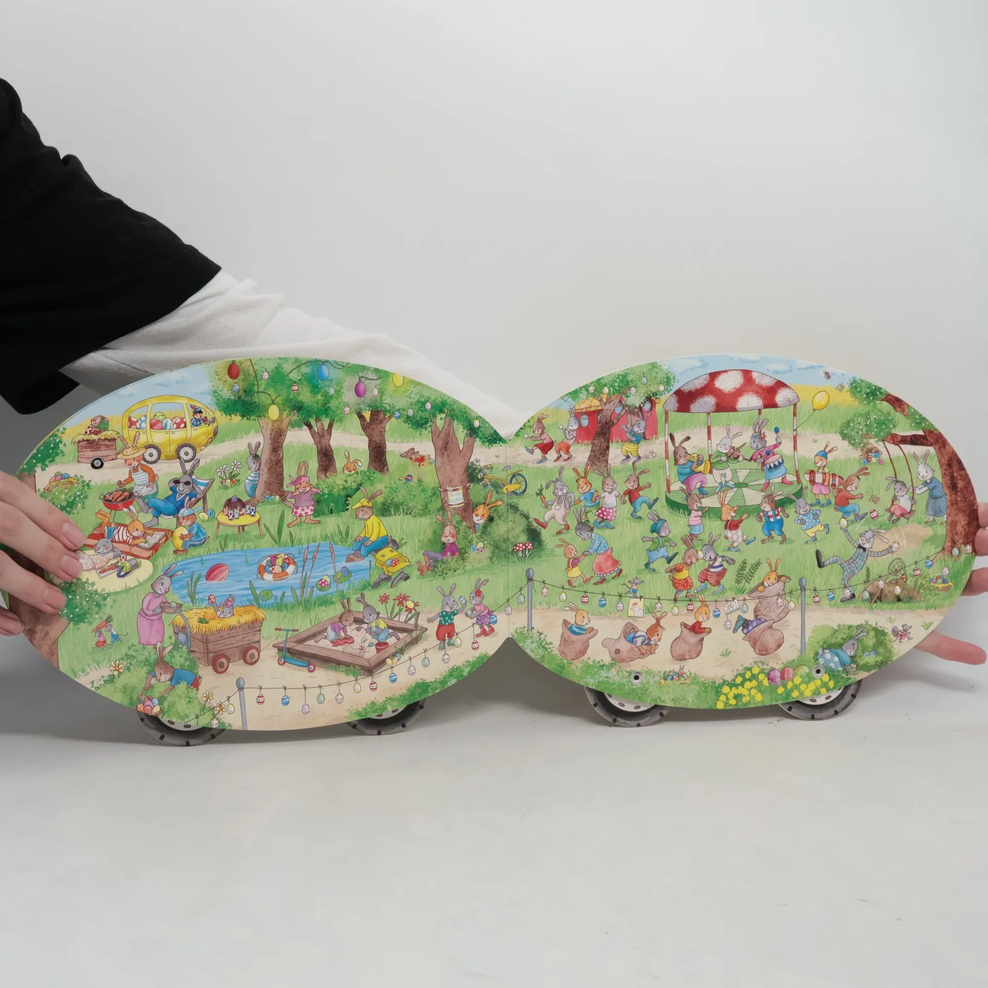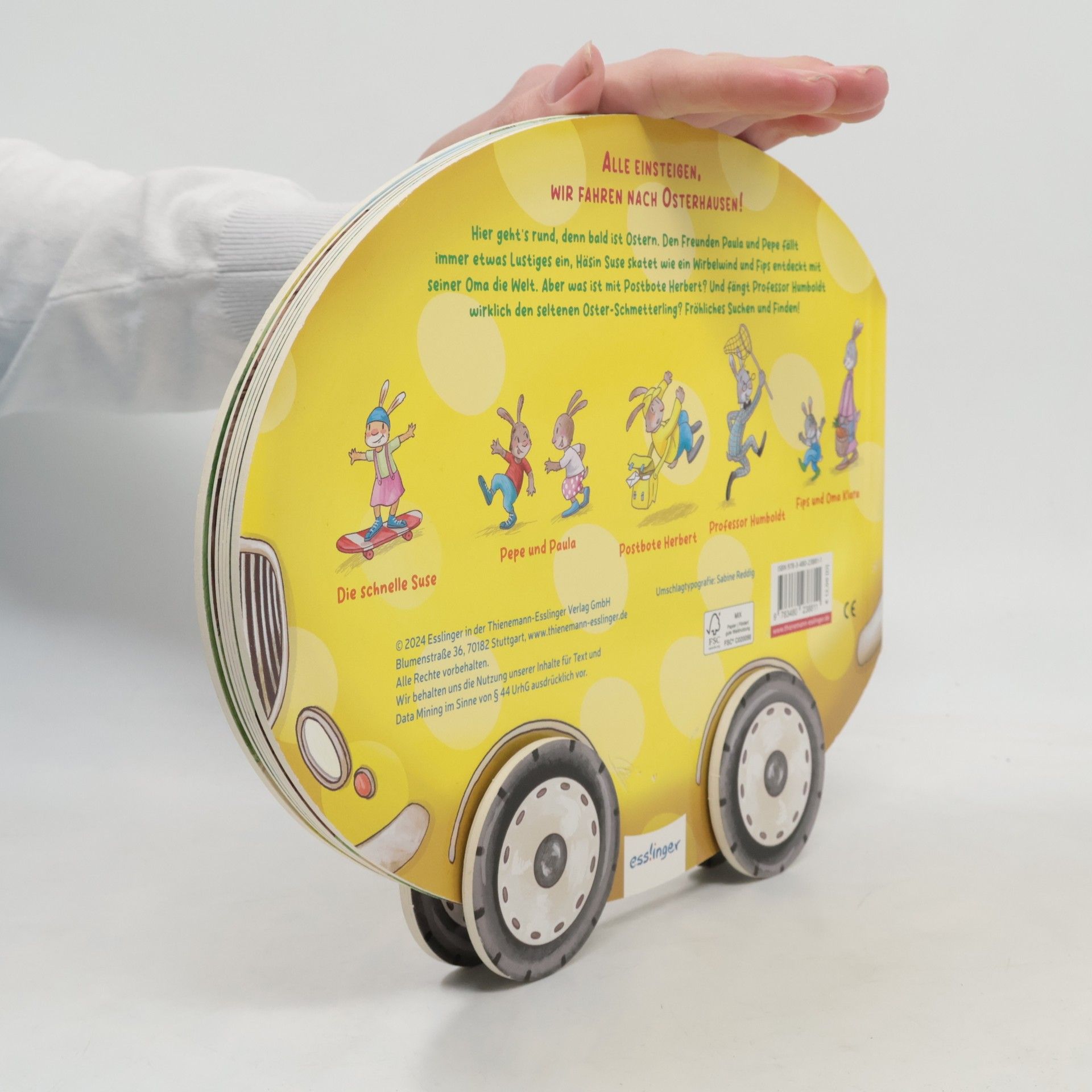 Bahn frei für das erste rollende Oster-Wimmel-Ei – ein tolles Oster-Geschenk für Kinder ab 3 Jahren! Bald ist Ostern und im Dörfchen Osterhausen geht's rund. Den Freunden Paula und Pepe fällt immer etwas Lustiges ein, Häsin Suse skatet wie ein Wirbelwind und Fips entdeckt mit seiner Oma die Welt. Aber was ist mit Postbote Herbert? Oder Professor Humboldt, der auf der Suche nach dem seltenen Oster-Schmetterling ist? Und wer entdeckt den flitzegelben Osterhasen-Express in jeder Szene? Auf den großen Panoramaseiten gibt es viel zu sehen, zu suchen und zu finden. Und wer mag, rollert den Osterhasen-Express einmal durchs ganze Kinderzimmer!