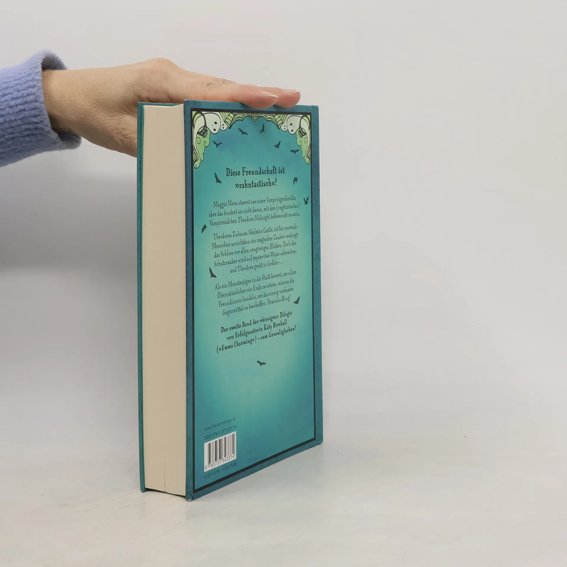 Moon und Midnight sorgen für allerbeste Unterhaltung – mit Magie, Witz, Slapstick und einem ordentlichen Schuss Blut(orangensaft) Maggie Moon stammt aus einer Vampirjägerfamilie, aber das hindert sie nicht daran, mit dem (vegetarischen!) Vampirmädchen Theodora Midnight befreundet zu sein. Theodoras Zuhause, Skeleton Castle, ist für normale Menschen unsichtbar, ein magischer Zauber verbirgt das Schloss vor allzu neugierigen Blicken. Doch der Schutzzauber wird auf mysteriöse Weise schwächer, und Theodora gerät in Gefahr! Als ein Monsterjäger in die Stadt kommt, um allem Übernatürlichen ein Ende zu setzen, müssen die Freundinnen handeln, um das einzig wirksame Gegenmittel zu beschaffen: Draculas Ring! Der zweite Band der neuen »bissigen« Mädchenbuch-Dilogie von Erfolgsautorin Katy Birchall (»Emma Charming«) Perfekt für alle Fans von lustigen Gruselgeschichten Ideales Geschenk für Halloween und spannende Lektüre für die Herbstferien Witzig, originell und voller Magie Mit lustigen Vignetten von Alexandra Helm