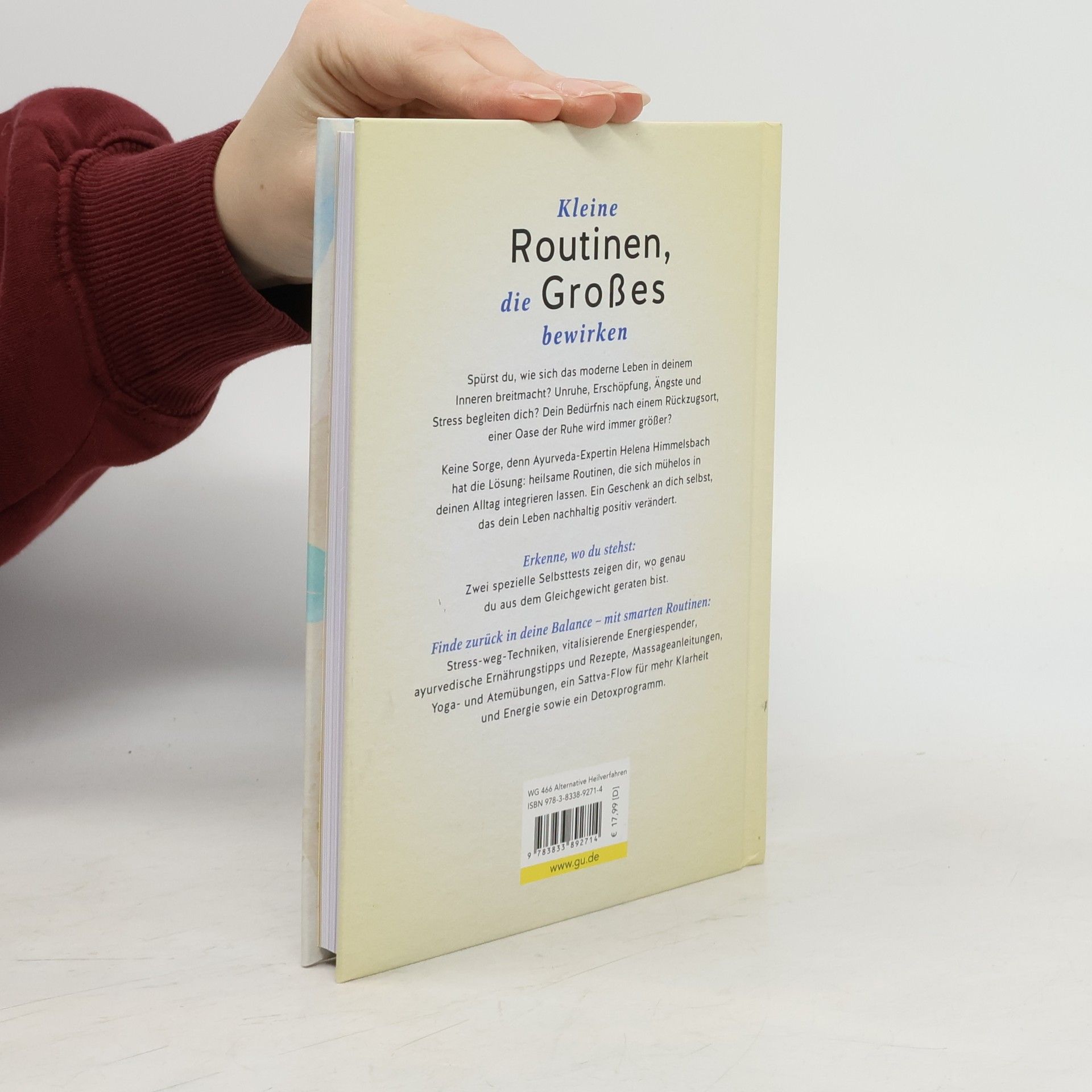 Kleine Routinen, die Großes bewirkenSpürst du, wie sich das moderne Leben in deinem Inneren breitmacht? Unruhe, Erschöpfung, Ängste und Stress begleiten dich? Dein Bedürfnis nach einem Rückzugsort, einer Oase der Ruhe wird immer größer?Keine Sorge, denn die Ayurveda-Expertin und beliebte Ayurveda-Instagramerin Helena Himmelsbach hat die Lösung: heilsame Routinen, die sich mühelos in deinen Alltag integrieren lassen. Ein Geschenk an dich selbst, das dein Leben nachhaltig positiv verändert!Erkenne, wo du stehst: Zwei spezielle Selbsttests zeigen dir, wo genau du aus dem Gleichgewicht geraten bist.Finde zurück in deine Balance – mit smarten Routinen: Stress-weg-Techniken, vitalisierende Energiespender, ayurvedische Ernährungstipps und Rezepte, Massageanleitungen, Yoga- und Atemübungen, ein Sattva-Flow für mehr Klarheit und Energie sowie ein Detoxprogramm.