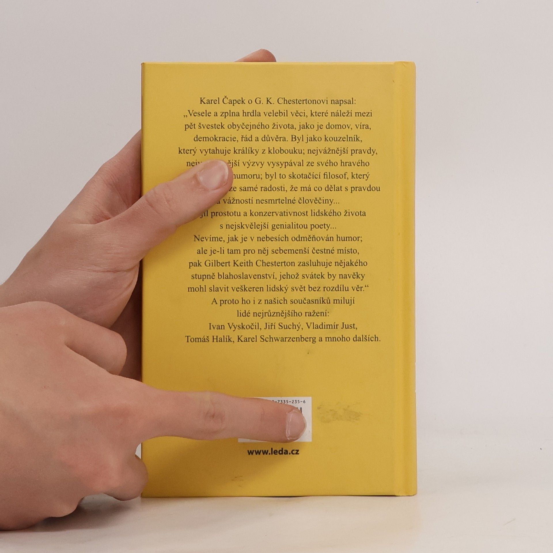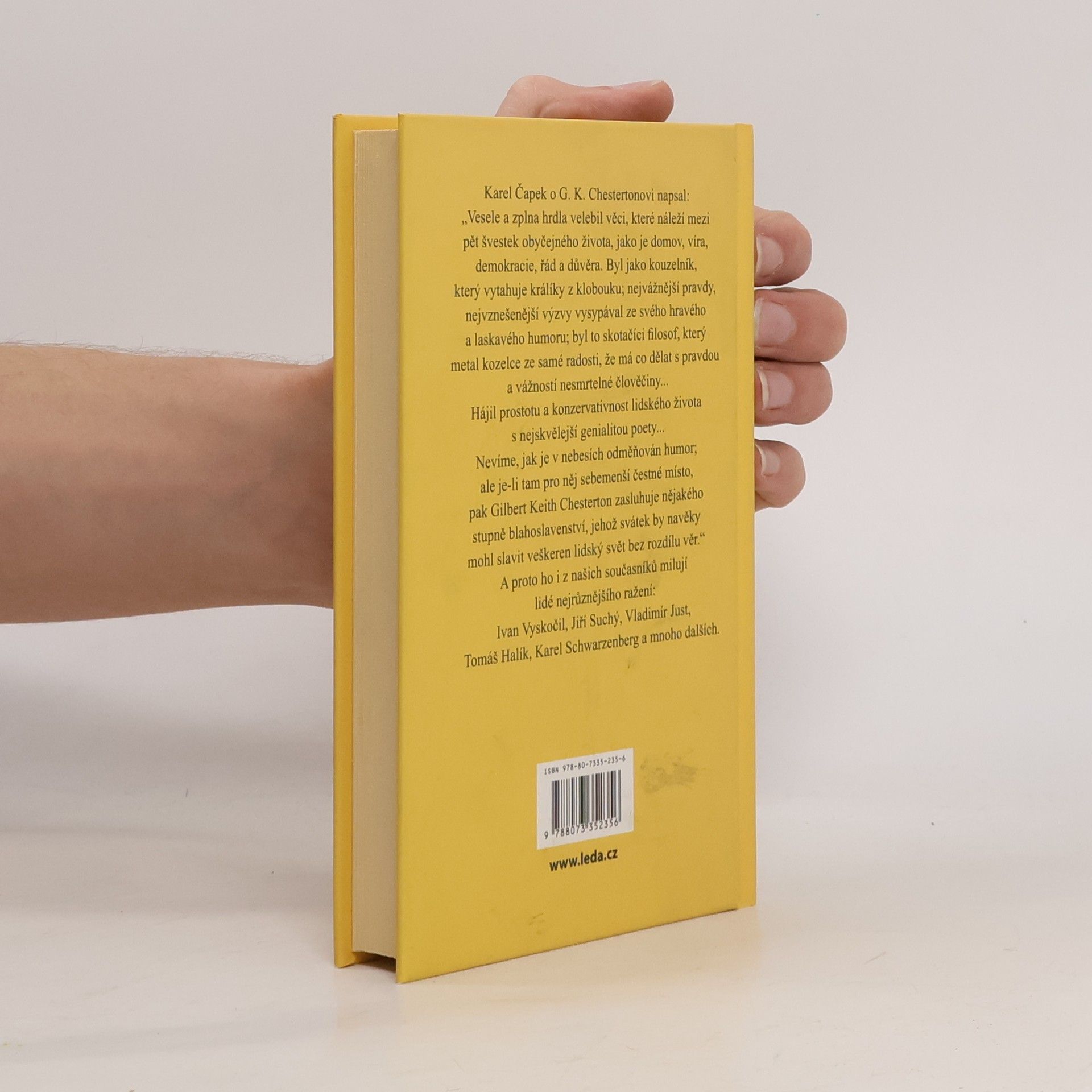 Karel Čapek o G. K. Chestertonovi napsal: „Vesele a zplna hrdla velebil věci, které náleží mezi pět švestek obyčejného života, jako je domov, víra, demokracie, řád a důvěra. Byl jako kouzelník, který vytahuje králíky z klobouku; nejvážnější pravdy, nejvznešenější výzvy vysypával ze svého hravého a laskavého humoru; byl to skotačící filosof, který metal kozelce ze samé radosti, že má co dělat s pravdou a vážností nesmrtelné člověčiny... Hájil prostotu a konzervativnost lidského života s nejskvělejší genialitou poety. Nevíme, jak je v nebesích odměňován humor; ale je-li tam pro něj sebemenší čestné místo, pak Gilbert Keith Chesterton zasluhuje nějakého stupně blahoslavenství, jehož svátek by navěky mohl slavit veškeren lidský svět bez rozdílu věr.“ A proto ho i z našich současníků milují lidé nejrůznějšího ražení: Ivan Vyskočil, Jiří Suchý, Vladimír Just, Tomáš Halík, Karel Schwarzenberg a mnoho dalších. Vybral a přeložil A. Tomský Vydání první