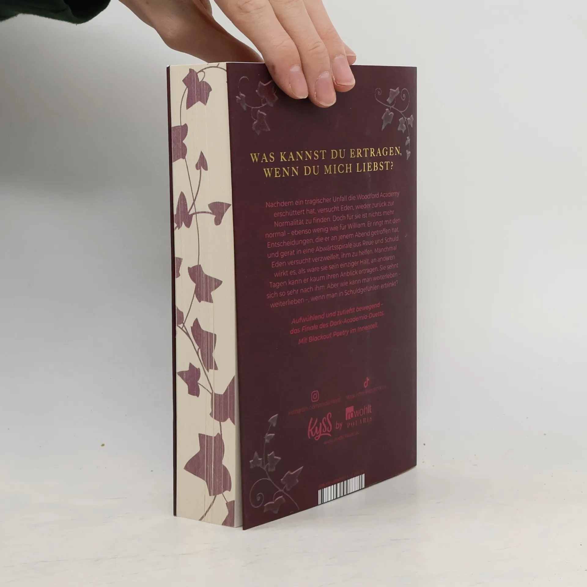 Das herzzerreißende Finale des Dark-Academia-Duetts. Bist du bereit? Nachdem ein tragischer Unfall die Woodford Academy erschüttert hat, versucht Eden, wieder zurück zur Normalität zu finden. Doch für sie ist nichts mehr normal – ebenso wenig wie für William. Er ringt mit den Entscheidungen, die er an jenem Abend getroffen hat, und gerät in eine Abwärtsspirale aus Reue und Schuld. Eden versucht verzweifelt, ihm zu helfen. Manchmal wirkt es, als wäre sie sein einziger Halt, an anderen Tagen kann er kaum ihren Anblick ertragen. Sie sehnt sich so sehr nach ihm. Aber wie kann man weiterleben – weiterlieben –, wenn man in Schuldgefühlen ertrinkt? Aufwühlend und zutiefst bewegend – die Fortsetzung des Spiegel-Bestsellers «Dark Ivy - Wenn ich falle». Mit Blackout Poetry im Innenteil.