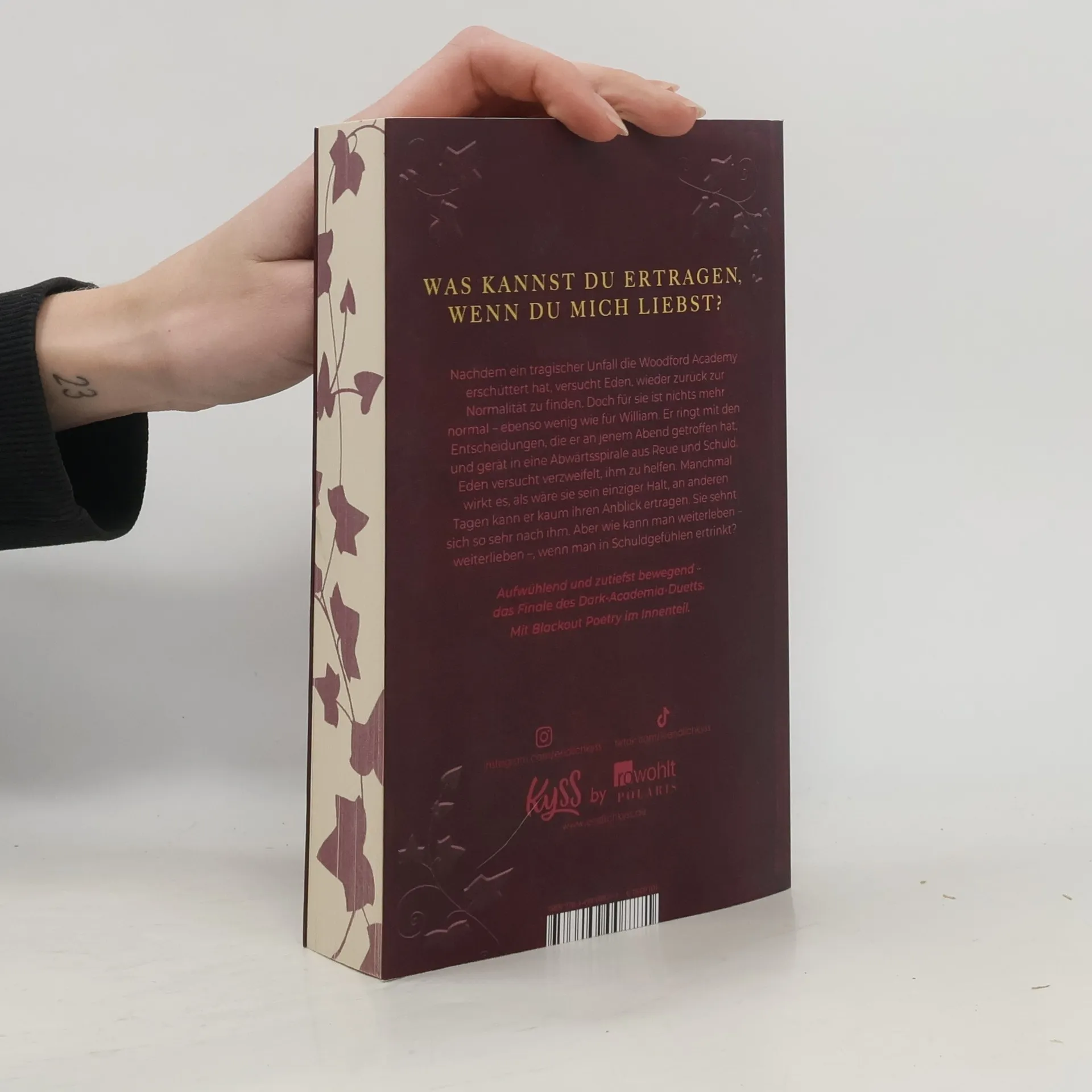 Das herzzerreißende Finale des Dark-Academia-Duetts. Bist du bereit? Nachdem ein tragischer Unfall die Woodford Academy erschüttert hat, versucht Eden, wieder zurück zur Normalität zu finden. Doch für sie ist nichts mehr normal – ebenso wenig wie für William. Er ringt mit den Entscheidungen, die er an jenem Abend getroffen hat, und gerät in eine Abwärtsspirale aus Reue und Schuld. Eden versucht verzweifelt, ihm zu helfen. Manchmal wirkt es, als wäre sie sein einziger Halt, an anderen Tagen kann er kaum ihren Anblick ertragen. Sie sehnt sich so sehr nach ihm. Aber wie kann man weiterleben – weiterlieben –, wenn man in Schuldgefühlen ertrinkt? Aufwühlend und zutiefst bewegend – die Fortsetzung des Spiegel-Bestsellers «Dark Ivy - Wenn ich falle». Mit Blackout Poetry im Innenteil.