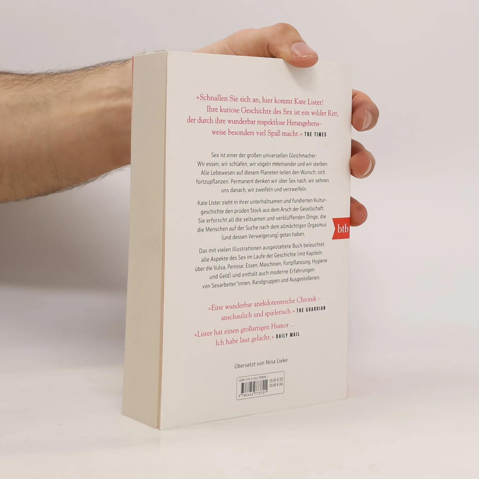 »Schnallen Sie sich an, hier kommt Kate Lister! Ihre kuriose Geschichte des Sex ist ein wilder Ritt.« The Times In »Sex - Die ganze Geschichte« untersucht Kate Lister historische Phänomene rund um die Sexualität, seit es Zeugnisse hiervon gibt. Einen besonderen Fokus legt sie dabei auf das Mittelalter und die viktorianischer Zeit. Es geht um gesellschaftlichen Verschiebungen in unserer Haltung zum Sextrieb. Sie untersucht das Wort »cunt« als bösestes aller bösen Wörter, schreibt über rassistische Fetische und Kuriosa wie Duschen als Schwangerschaftsverhütung. Das Buch enthält eine Vielzahl literarischer Quellen und Abbildungen, es ist die fundierte Sammlung einer akribischen Wissenschaftlerin, die in der Popkultur zu Hause ist und ihre Erkenntnisse immer mit den Themen unserer Zeit verknüpft. Kate Lister setzt sich dabei für die Entkriminalisierung von Sexarbeit, für eine gendergerechte Sprache und eine gesunde, schamfreie Sexualaufklärung ein. Ausstattung: durchgehend bebildert