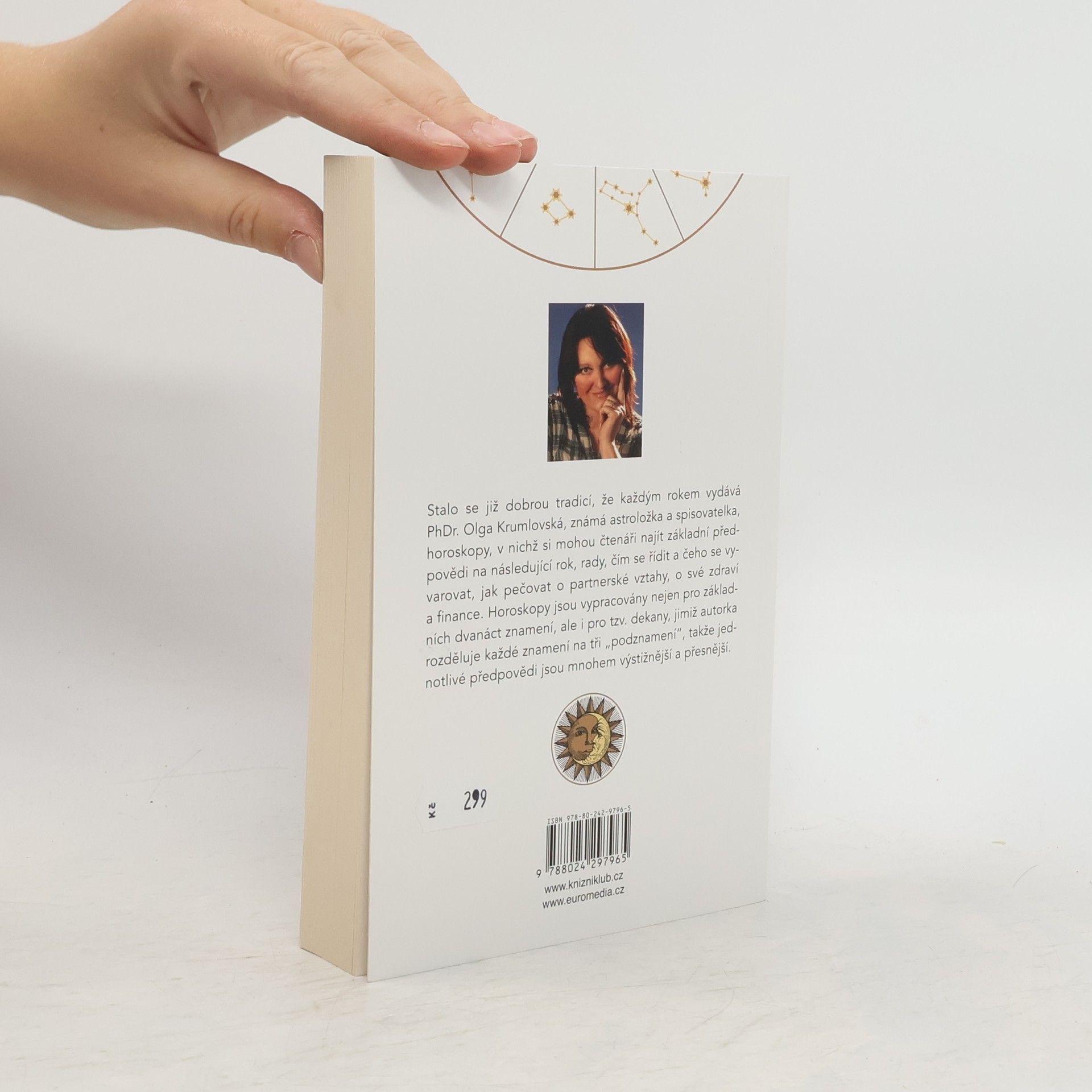 Stalo se již dobrou tradicí, že každým rokem vydává PhDr. Olga Krumlovská, známá astroložka a spisovatelka, horoskopy, v nichž si mohou čtenáři najít základní předpovědi na následující rok, rady, čím se řídit a čeho se vyvarovat, jak pečovat o partnerské vztahy, o své zdraví a finance. Horoskopy jsou vypracovány nejen pro základních dvanáct znamení, ale i pro tzv. dekany, jimiž autorka rozděluje každé znamení na tři „podznamení“, takže jednotlivé předpovědi jsou mnohem výstižnější a přesnější.