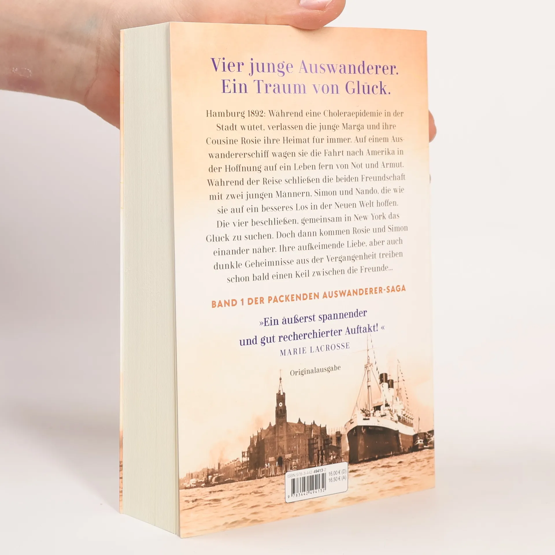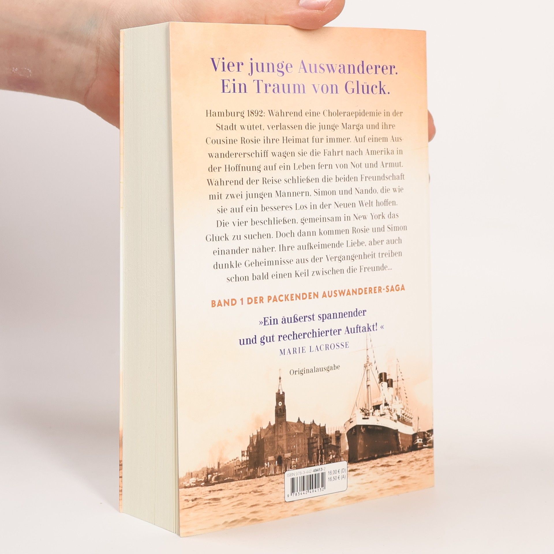 Vier junge Auswanderer suchen ihr Glück in der Neuen Welt … Hamburg 1892: Während eine Choleraepidemie in der Stadt wütet, verlassen die junge Marga und ihre Cousine Rosie ihre Heimat für immer. Auf einem Auswandererschiff wagen sie die Fahrt nach Amerika in der Hoffnung auf ein Leben fern von Not und Armut. Während der langen Reise schließen die beiden Freundschaft mit zwei jungen Männern, Simon und Nando, die wie sie auf ein besseres Los in der Neuen Welt hoffen. Die vier beschließen, gemeinsam in New York das Glück zu suchen. Doch dann kommen Rosie und Simon einander näher. Ihre aufkeimende Liebe, aber auch dunkle Geheimnisse aus der Vergangenheit treiben einen Keil zwischen die Freunde, und die Gruppe droht schon bald nach der Ankunft zu zerbrechen ...