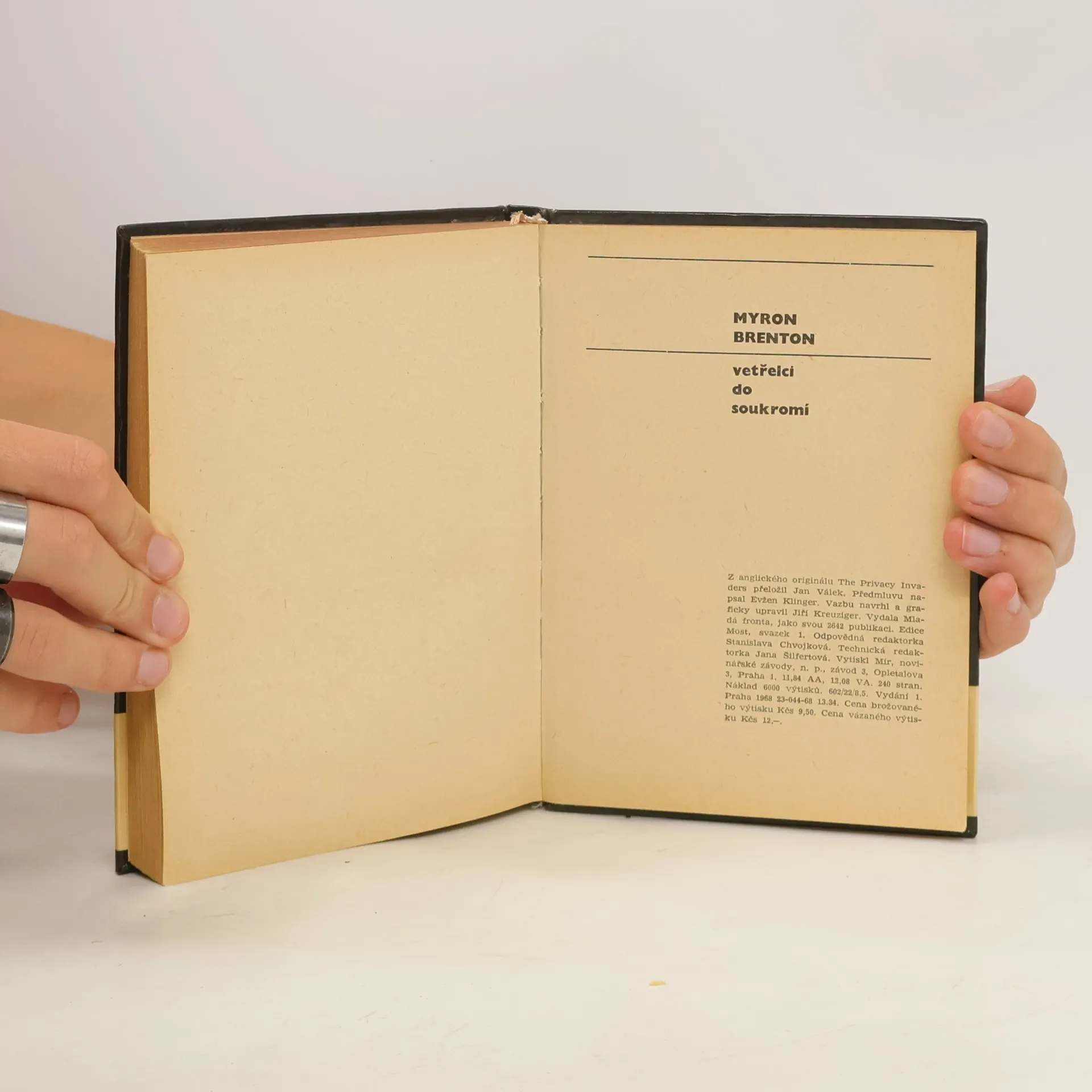 Studie zabývající se porušováním lidského soukromí v USA. Autor zde odhaluje nejmodernější technikou vybavený detektivní aparát, který ve službách velkých finančních, průmyslových a obchodních společností, ale také ve službáchpolitiků, a vůbec lidí, kteří za to mohou zaplatit, zajímá se o nejsoukromější život miliónů občanů a dovede všechno opatřit: intimní nebo zatěžující korespondenci, soukromé rozhovory, důvěrné dokumenty, usvědčující fotografie,údaje o zdraví a finančních poměrech, o sklonech a zálibách, o soukromých osobních stycích apod. Studie je doplněna řadou konkrétních případů ze života postižených osob.