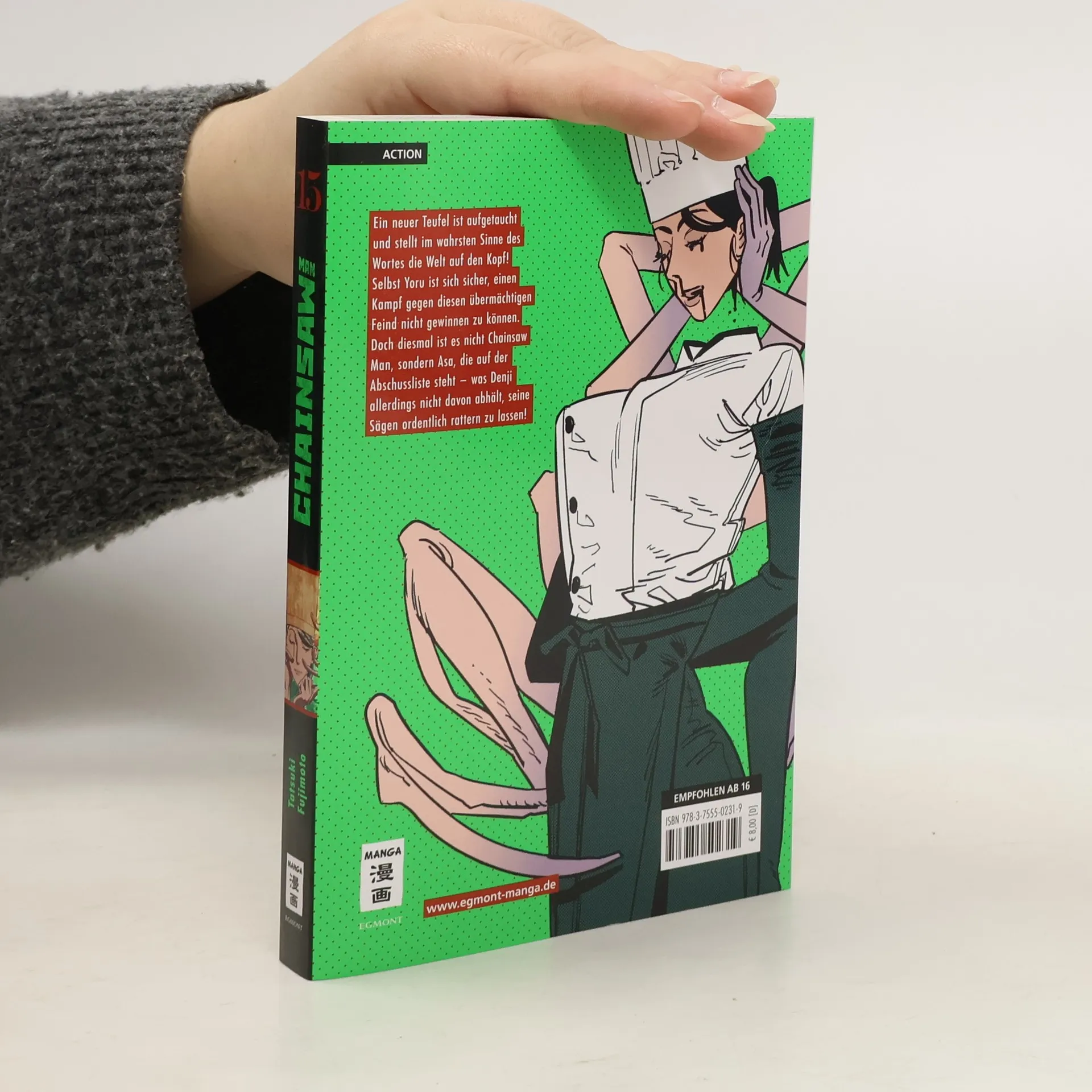 CHAINSAW MAN – An diesem Hype führt kein Weg vorbei! Wer sich in den letzten Jahren auch nur ein wenig mit Anime und Manga beschäftigt hat, der wird unweigerlich von Chainsaw Man gehört haben. Mit seinem abgedrehten Mix aus Humor, Spannung und jeder Menge Action hat Tatsuki Fujimotos Mega-Hit nicht nur die Herzen japanischer Manga-Fans erobert – auch Deutschland ist im Chainsaw-Man-Fieber! Inhalt Band 15 : Ein neuer Teufel ist aufgetaucht und stellt im wahrsten Sinne des Wortes die Welt auf den Kopf! Selbst Yoru ist sich sicher, einen Kampf gegen diesen übermächtigen Feind nicht gewinnen zu können. Doch diesmal ist es nicht Chainsaw Man, sondern Asa, die auf der Abschussliste steht – was Denji allerdings nicht davon abhält, seine Sägen ordentlich rattern zu lassen! „Blutig, lustig und actiongeladen.“ – Manga Passion.