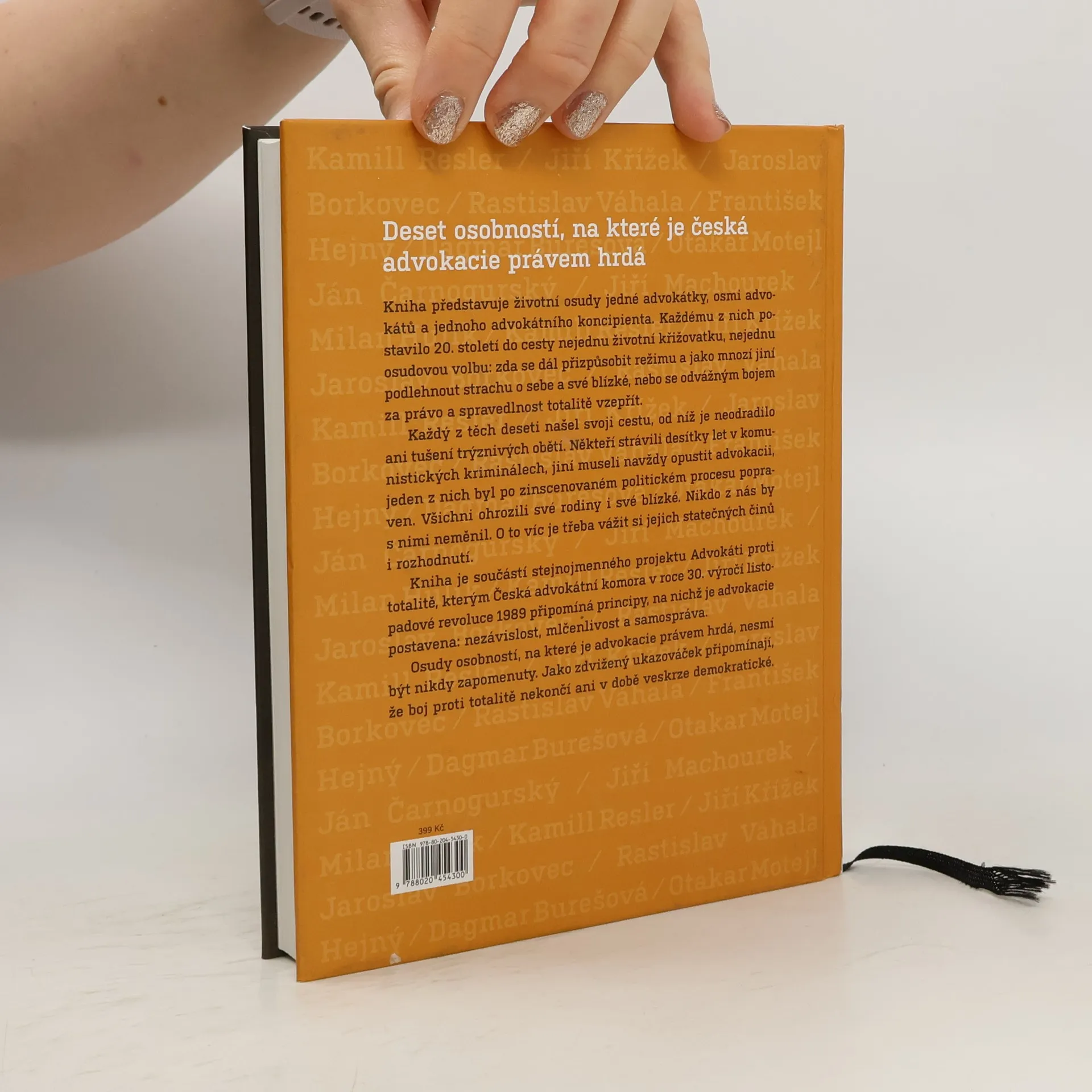 Kniha představuje životní osudy jedné advokátky, osmi advokátů a jednoho advokátního koncipienta. Každému z nich postavilo dvacáté století, ve kterém žili, do cesty nejednu životní křižovatku. Osudovou volbu, kudy dál: zda se přizpůsobit režimu a jako mnozí jiní podlehnout strachu o sebe a své blízké, nebo odvážným bojem za právo a spravedlnost se totalitě vzepřít. Každý z těch deseti se vydal správným směrem. S vědomím vlastního ohrožení i tušením trýznivých obětí. Někteří strávili desítky let v komunistických kriminálech, jiní museli navždy opustit advokacii a jeden z nich byl dokonce v zinscenovaném politickém procesu odsouzen k trestu smrti. Všichni ohrozili své rodiny i své blízké. Nikdo z nás, kteří žijeme v 21. století, by s nimi neměnil. O to víc je třeba vážit si jejich statečných činů i rozhodnutí. Kniha je součástí projektu Advokáti proti totalitě, kterým Česká advokátní komora v roce 30. výročí listopadové revoluce 1989 připomíná principy, na nichž je advokacie postavena: nezávislost, mlčenlivost a samospráva. Osudy advokátů, na které je advokacie právem hrda, nesmí být nikdy zapomenuty. Jako zdvižený ukazováček musí připomínat, že boj proti totalitě nekončí ani v době veskrze demokratické.
