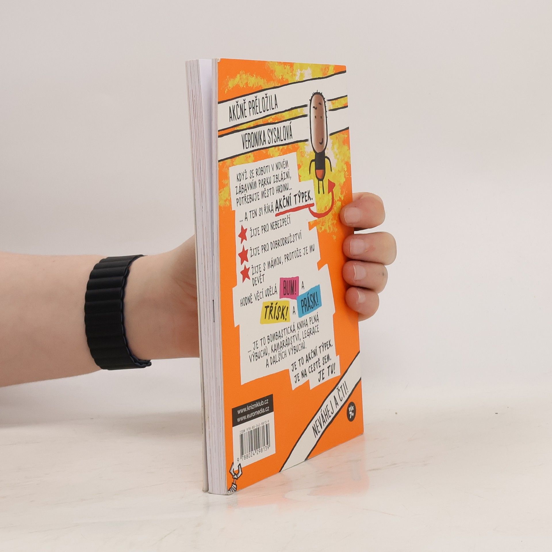 Akční týpek je opravdový akční hrdina! Skáče z vrtulníků, rozbíjí lodě, běhá po vrcholcích jeřábů a vychází z budov těsně před výbuchem. Je to ten nejodvážnější týpek, jaký kdy existoval! Až na to, že se bojí pavouků. (Ale to nikdy nikomu neříkejte!) Když se v zábavním parku plném robotů stane neštěstí, musí zasáhnout. Koneckonců nikdo jiný není takový blázen, aby tam jen tak vešel a všechny zachránil!