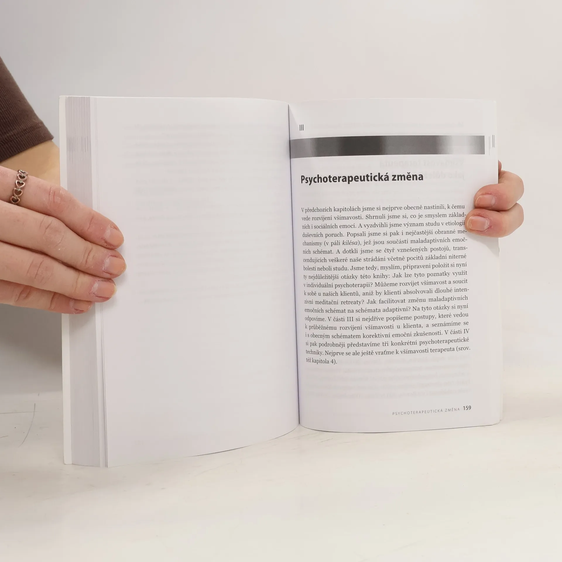 Autor čerpá z vlastní bohaté klinické zkušenosti, z meditační praxe i z nejnovějších výzkumů v oblasti emocí, všímavosti (mindfulness) a soucitu se sebou samým (self-compassion). Navazuje na práce M. Frýby, A. Pessa, E. Gendlina, L. Greenberga a dalších a představuje vlastní ucelenou teorii vzniku nejčastějších psychopatologických symptomů. Kniha nabízí originální transdiagnostický model psychoterapeutické změny i praktický popis postupů a technik, jež lze integrovat v rámci kteréhokoli psychoterapeutického přístupu. V kontextu narůstajícího zájmu o využívání všímavosti představuje čtenářům dosud nepublikované psychoterapeutické postupy. Moderní pohled, který kniha nabízí, může být cennou inspirací jak pro odborníky, tak pro všechny zájemce o sebepoznávání a seberozvoj.