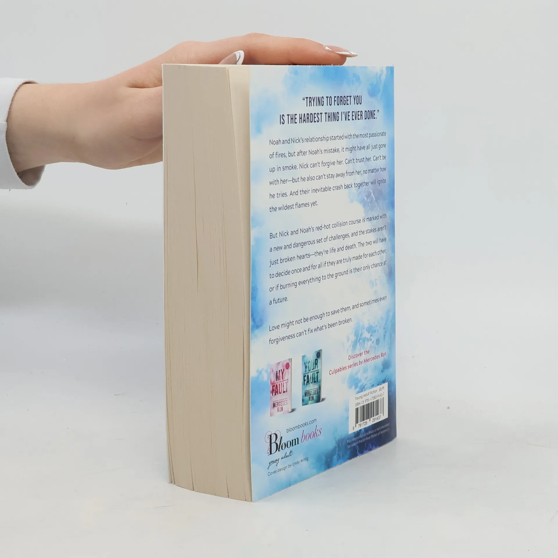 A BookTok and Wattpad Viral Sensation Fast-paced and sizzling with a forbidden enemies-to-lovers romance, Our Fault is the final book in Mercedes Ron's Culpable trilogy. This suspenseful YA series untangles the threads of love, trauma, and secrets, perfect for fans of Ugly Love and After.Nick and Noah's rocky relationship is struggling through its worst moment, and it seems that nothing can go back to the way it was before. They will have to surmount a new and frightening set of challenges to finally understand if they are really made for each other or if being apart is their only chance to be happy.Love is not always enough, and forgiveness sometimes doesn't fix what's been broken. But can you forget such a strong connection? How can memories tattooed on the heart be erased? Will they be able to leave the past behind and start over?