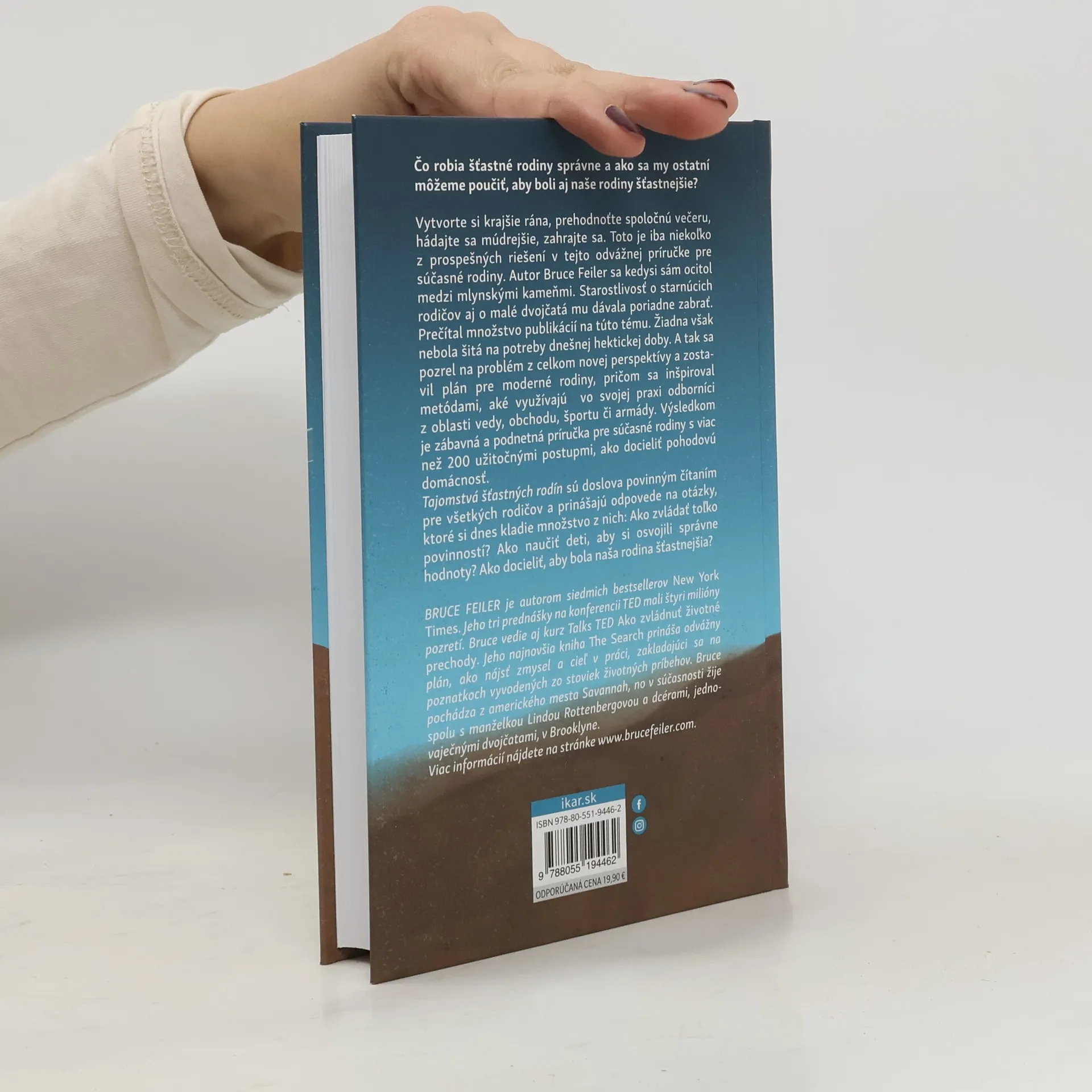 Návod, ako docieliť pohodovú domácnosť Čo robia šťastné rodiny správne a ako sa my ostatní môžeme poučiť, aby boli aj naše rodiny šťastnejšie? Vytvorte si krajšie rána, prehodnoťte spoločnú večeru, hádajte sa múdrejšie, zahrajte sa. Toto je iba niekoľko z prospešných riešení v tejto odvážnej príručke pre súčasné rodiny. Autor Bruce Feiler sa kedysi sám ocitol medzi mlynskými kameňmi. Starostlivosť o starnúcich rodičov aj o malé dvojčatá mu dávali poriadne zabrať. Prečítal množstvo publikácií na túto tému. Žiadna však nebola šitá na potreby dnešnej hektickej doby. A tak sa pozrel na problém z celkom novej perspektívy a zostavil plán pre moderné rodiny, pričom sa inšpiroval metódami, aké využívajú vo svojej praxi odborníci z oblasti vedy, obchodu, športu či armády. Výsledkom je zábavná a podnetná príručka pre súčasné rodiny s viac ako 200 užitočnými postupmi, ako docieliť pohodovú domácnosť. Tajomstvá šťastných rodín sú doslova povinným čítaním pre všetkých rodičov a prinášajú odpovede na otázky, ktoré si dnes kladie množstvo z nich: Ako zvládať toľko povinnosti? Ako naučiť deti, aby si osvojili správne hodnoty? Ako docieliť, aby naša rodina bola šťastnejšia? Z anglického originálu The Secret of Happy Families (William Morrow. An Imprint of HarperCollinsPublishers, 2013 USA) preložil Martin Štulrajter.