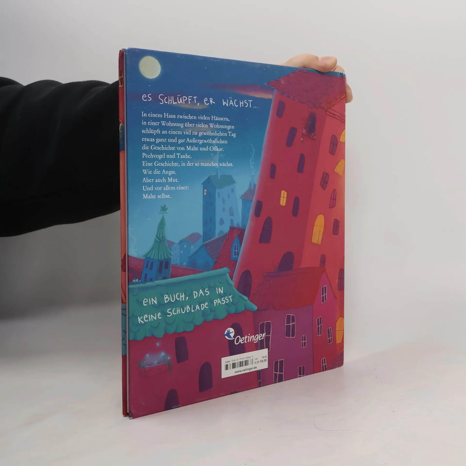 In einem Haus zwischen vielen Häusern, in einer Wohnung über vielen Wohnungen lebt ein Junge. Malte. Auf den ersten Blick wirkt Malte ganz und gar gewöhnlich. Doch was keiner der Blicke verrä Malte hat Angst. Angst vor den anderen da draußen. Nur in seiner kleinsten Badewanne der Welt fühlt er sicher. Und genau hier passiert Malte eines Tages etwas ganz und gar Außergewö Er trifft seinen besten Freund. Oßkar, die Taube. Und wer hätte gedacht, dass dieses kleine Wesen Malte auf eine ganz besondere Reise führt, seine größte die Reise zu seiner Angst. Und zu sich selbst.