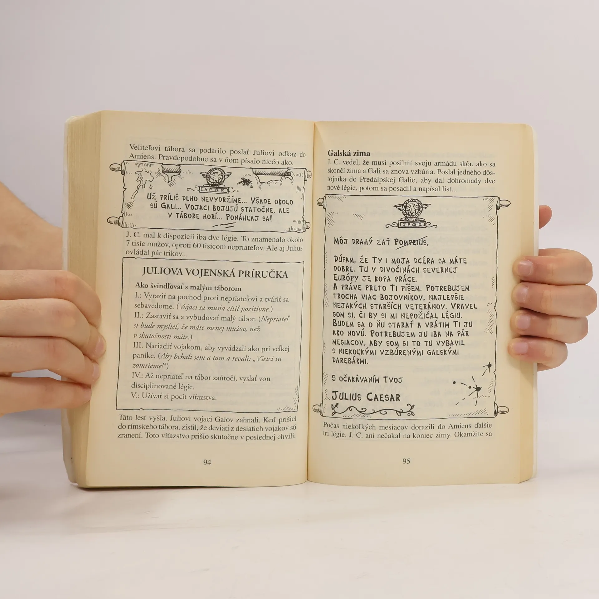 Ďalšie rozprávanie o známej osobnosti v edícii Drahí zosnulí približuje život Caesara s humorom a nadsadením. Neformálnym jazykom opisuje Caesarovo detstvo, mladosť i dobu jeho vlády, ale aj celkovú situáciu v starovekom Ríme. Čitateľ sa napríklad dozvie, prečo sa jeho priatelia obrátili protinemu a dopadol tak, ako dopadol, ako zmenil dejiny jeho milostný vzťah s Kleopatrou atď. Text je sprevádzaný jednoduchými ilustráciami komiksového typu a prerozprávanými poznámkami z Juliovho tajného denníka, ďalej potom fiktívnymi článkami o politických škandáloch z Republikánskych novín, alebo zápisy vojenskej príručky.