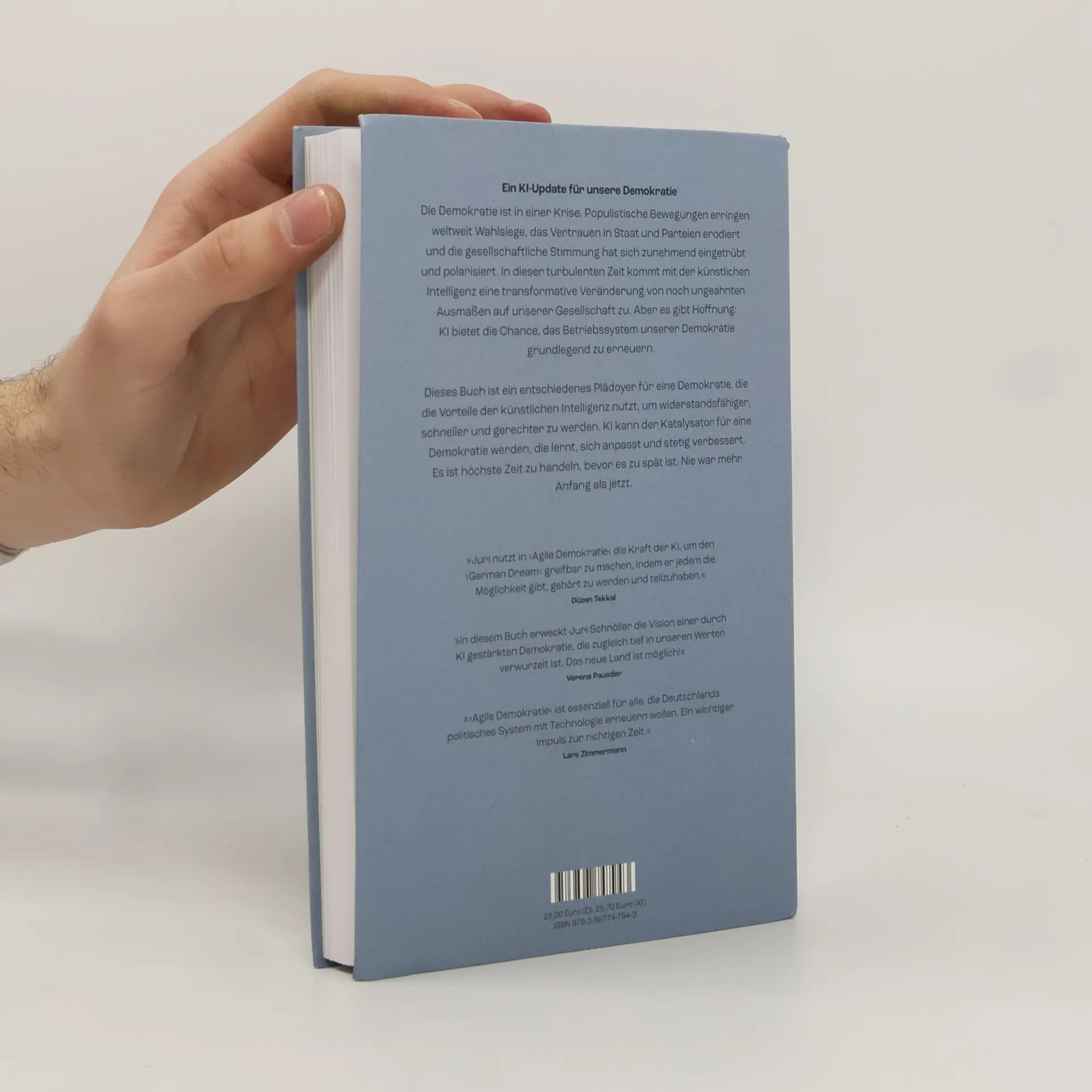 Künstliche Intelligenz hat in der Öffentlichkeit einen schweren Stand. Häufig zu hören: wahlweise übernehmen die großen Datenkraken oder gleich die Maschinen selbst die Macht. Mit der Folge: Die Demokratie erodiert. Wir müssen die KI vom Kopf auf die Füße stellen und ihre Vorteile nutzen lernen, sagt der Berliner Digitalisierungs- und Politikexperte Juri Schnöller. Dabei versucht er eine konstruktiv-progressive Perspektive einzunehmen. Das Buch bietet ein breites Spektrum von Fallbeispielen aus aller Welt, die zeigen, wie KI mit wenig Ressourcen eingesetzt werden kann, um die Demokratie zu stärken. Mit konkreten, umsetzbaren Empfehlungen, absolut praxisrelevant. Von der Kommunalpolitik bis zur großen Weltbühne. Ziel, so der Autor, ist eine agile Demokratie, die Potenziale, Chancen und Tools der KI nutzt, um besser und widerstandsfähiger zu werden. Hier steht erstmals sehr konkret, wie das praktisch umsetzbar ist.