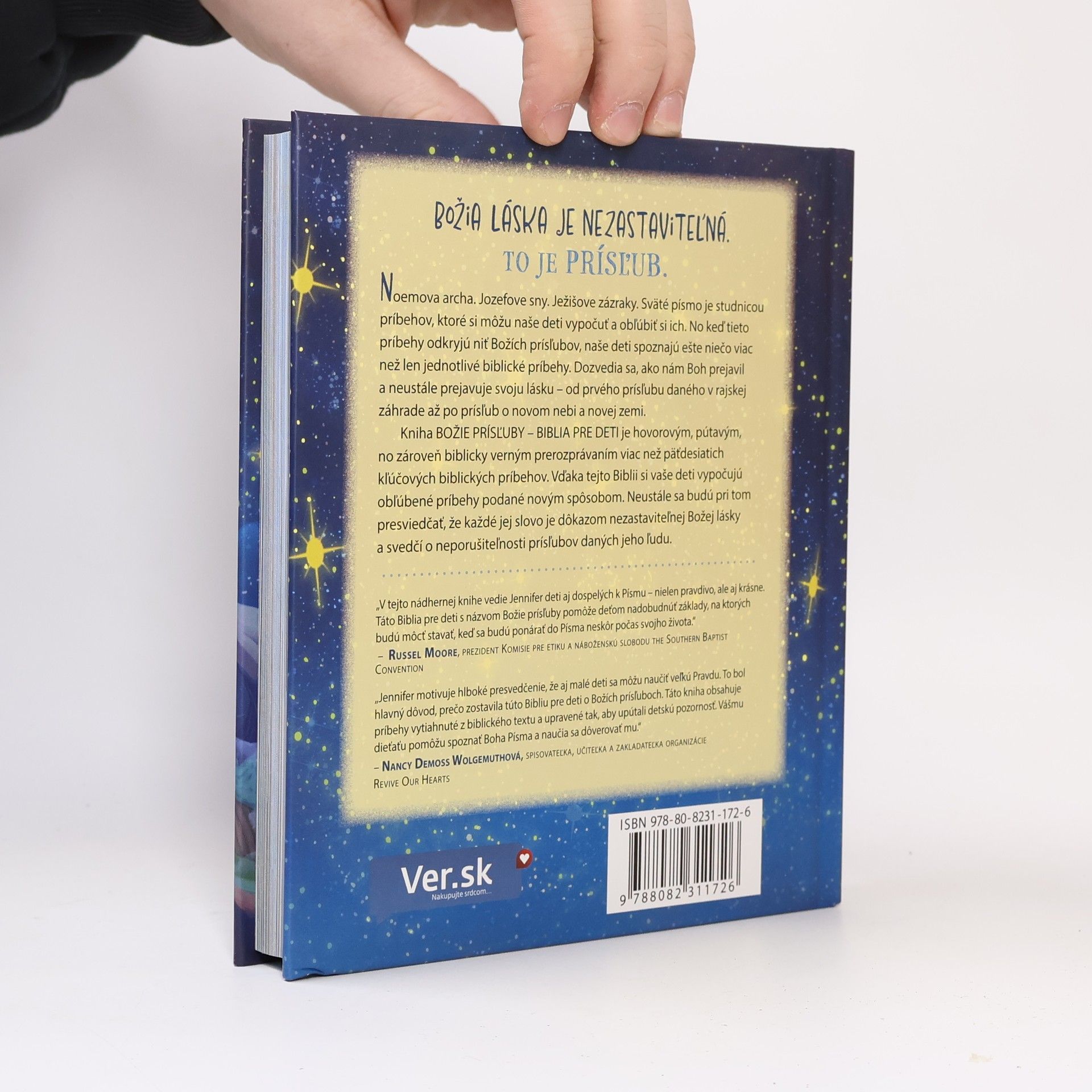Božia láska je nezastaviteľná, čo je jasným znakom jeho vernosti a neustálej náklonnosti voči nám. Môžeme sa naňho spoľahnúť s istotou, že nás nesklame. Kniha odhaľuje mnohé prísľuby, ktoré Boh dal človeku, a nezastaví sa, kým ich všetky nenaplní. Rôzne biblické príbehy, ako Noemova archa, Jozefove sny či Ježišove zázraky, sú prepojené a ponúkajú deťom možnosť spoznať Božiu lásku od prvého prísľubu v rajskej záhrade až po prísľub o novom nebi a novej zemi. Tento text je pútavým a biblicky verným prerozprávaním viac než päťdesiatich kľúčových biblických príbehov, ktoré prepája niť Božích prísľubov. Deti si vypočujú obľúbené príbehy podané novým spôsobom, pričom sa presvedčia, že každé slovo je dôkazom Božej lásky a neporušiteľnosti prísľubov. V tejto nádhernej knihe vedie autorka deti a dospelých k Písmu pravdivo a krásne. Pomôže deťom nadobudnúť základy, na ktorých budú môcť stavať neskôr počas svojho života. Autorka motivuje presvedčenie, že aj malé deti sa môžu naučiť veľkú Pravdu. Príbehy sú upravené tak, aby upútali detskú pozornosť a pomohli im spoznať Boha a dôverovať mu.