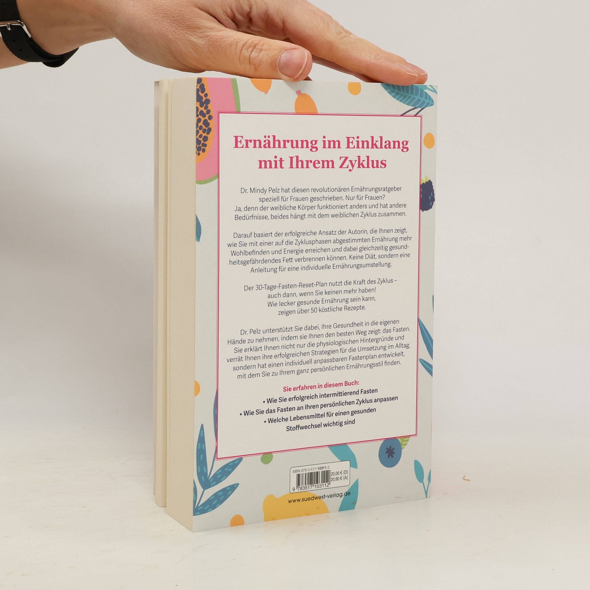 Gesunde Ernährung auf der Basis des weiblichen Zyklus Dr. Mindy Pelz hat einen revolutionären Ernährungsratgeber speziell für Frauen geschrieben. Nur für Frauen? Ja, denn Frauen sind keine Männer! Diese Erkenntnis ist nicht neu, steht aber zunehmend im Fokus von Wissenschaft und Forschung – gerade in den Bereichen Gesundheit und Ernährung. Der weibliche Körper funktioniert anders und hat andere Bedürfnisse, und beides hängt eng mit dem weiblichen Zyklus zusammen. Darauf basiert auch der erfolgreiche Ansatz der Autorin, die Ihnen in diesem praktischen Fastenhandbuch zeigt, wie Sie mit einer auf die Zyklusphasen abgestimmten Ernährung mehr Wohlbefinden und Energie erreichen, und dabei gleichzeitig gesundheitsgefährdendes Fett verbrennen können. Keine Diät, sondern eine einfache Anleitung für eine individuelle Ernährungsumstellung. Der 30-Tage-Fasten-Reset-Plan nutzt die Kraft des Zyklus – auch dann, wenn Sie keinen mehr haben! Wie gut gesunde Ernährung schmecken kann, zeigen die über 50 köstliche Rezepte. Ernährungsratgeber speziell auf die Bedürfnisse von Frauen zugeschnitten Mit 30-Tage-Fastenplan, der die Kraft Ihres Zyklus nutzt – auch wenn Sie keinen mehr haben! Über 50 Rezepte, basierend auf der metabolischen Ernährungsumstellung Ausstattung: ca. 10 Illustrationen s/w