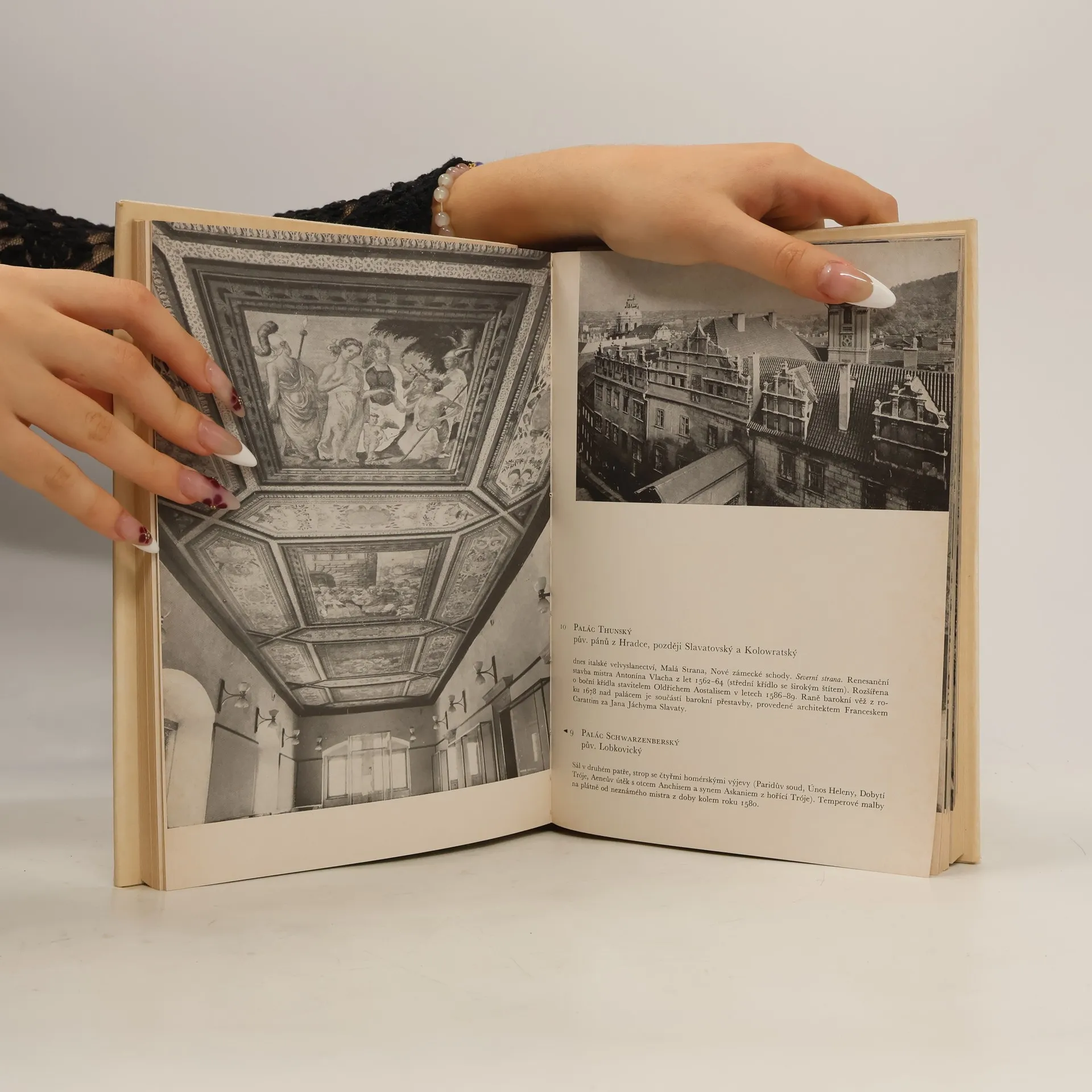 Publikace, provázená dobovými rytinami a současnými fotografiemi, zachycuje vývoj pražských paláců a jejich malířské výzdoby od prvních počátků pražské palácové architektury přes jednotlivá slohová období až do 19. století. V druhém vydání provedli autoři drobnější textové úpravy a doplňky.