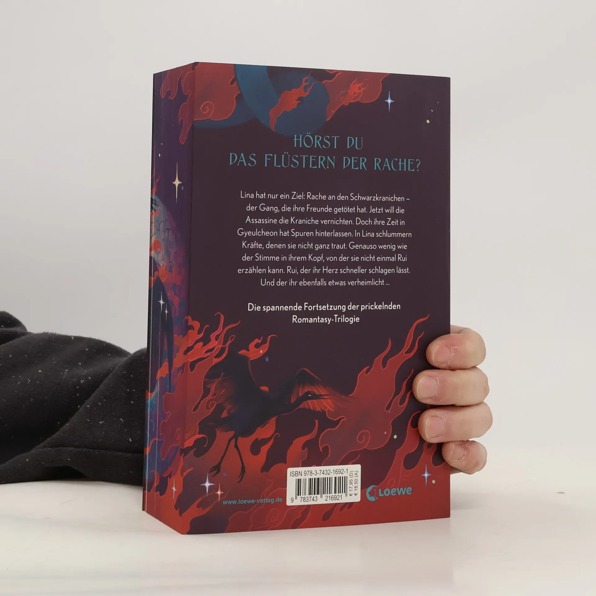 Hörst du das Flüstern der Rache? Lina hat nur ein Ziel: Rache an den Schwarzkranichen – der Gang, die ihre Freunde getötet hat. Jetzt will die Assassine die Kraniche vernichten. Doch ihre Zeit in Gyeulcheon hat Spuren hinterlassen. In Lina schlummern Kräfte, denen sie nicht ganz traut. Genauso wenig wie der Stimme in ihrem Kopf, von der sie nicht einmal Rui erzählen kann. Rui, der ihr Herz schneller schlagen lässt. Und der ihr ebenfalls etwas verheimlicht … Die spannende Fortsetzung der prickelnden Romantasy-Trilogie Rache, Geheimnisse und dunkle Kräfte – der zweite Band von Sophie Kims fesselnder Fantasy-Reihe zieht einen sofort in den Bann! Koreanische Mythologie trifft auf die spannende Welt der Diebe und Verbrecher. Mit einer prickelnden Romance zwischen einer Assassine und einem König sowie Action, Liebe, Tragik, Romantik und Plottwists , die einen atemlos zurücklassen!