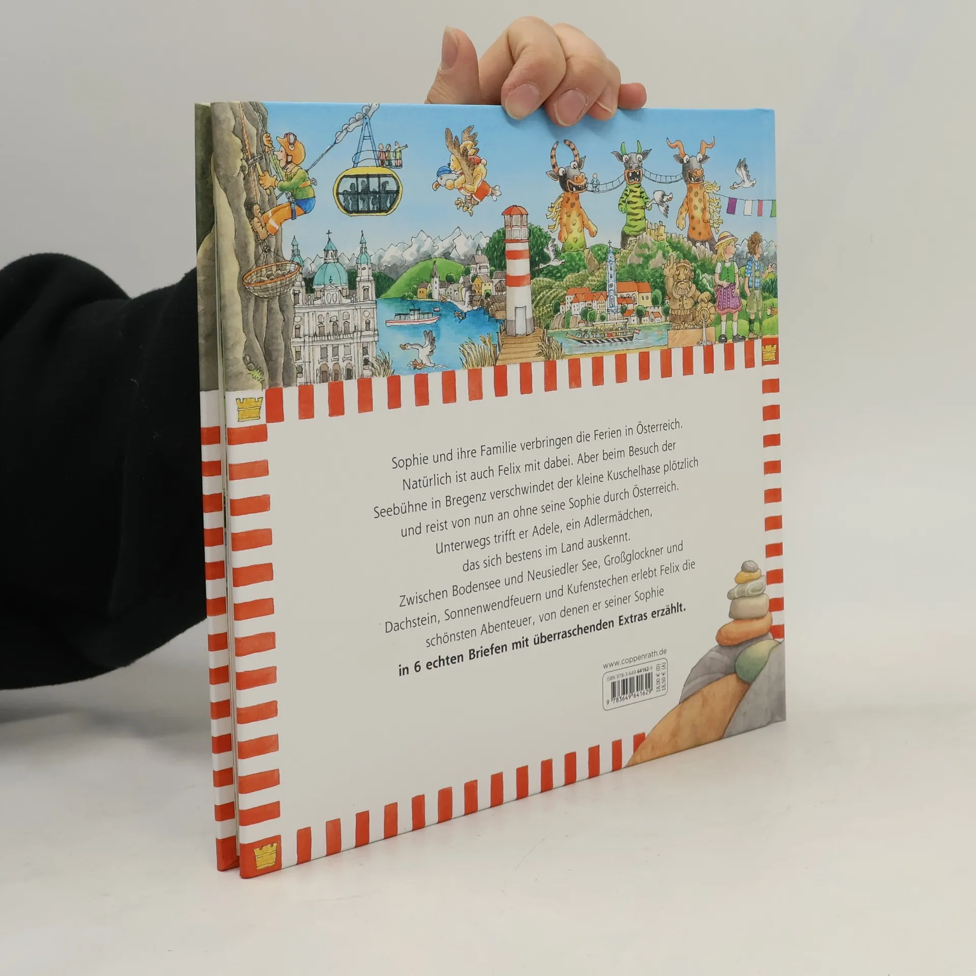 FELIX - Der reiselustigste Kuschelhase der Welt Sophie und ihre Familie machen Ferien in Österreich. Natürlich ist auch Felix mit dabei. Aber beim Besuch der Seebühne in Bregenz verschwindet der kleine Kuschelhase plötzlich und reist von nun an ohne seine Sophie durch Österreich. Unterwegs trifft er Adele, ein Adlermädchen, das sich bestens im Land auskennt. Zwischen Bodensee und Neusiedler See, Großglockner und Dachstein, Sonnenwendfeuern und Kufenstechen erlebt Felix die schönsten Abenteuer, von denen er seiner Sophie in 6 echten Briefen mit überraschenden Extras erzählt. Der reiselustige Hase unterwegs zu neuen Abenteuern Österreich ist ein beliebtes Reiseziel für Familien Mit sechs echten Briefen und tollen Extras