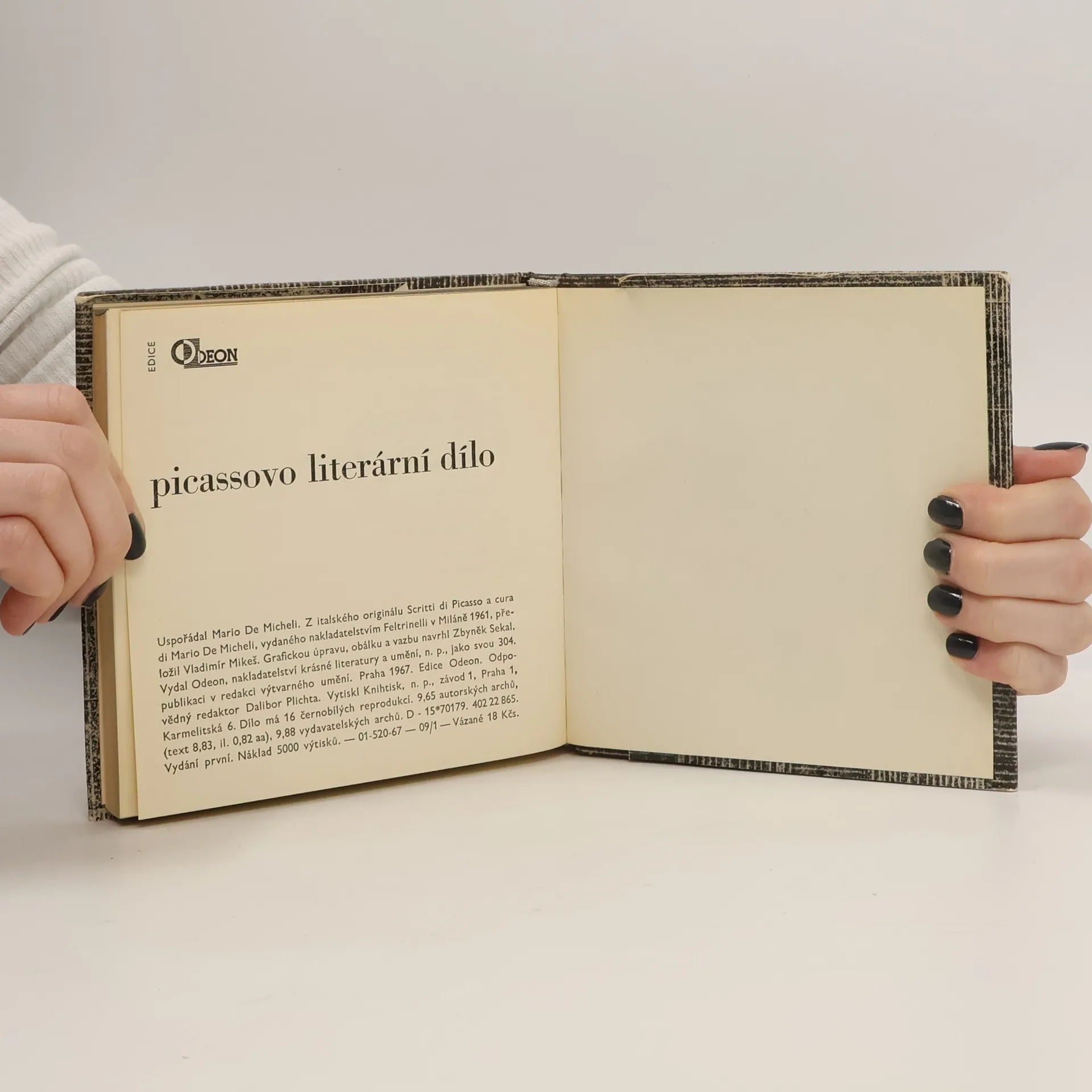Sborník zahrnuje Picassovy studie o poetice a politice, Picassovu uměleckou tvorbu literární (básně, básnické pamflety, vzpomínky, básnické texty provázející nebo vysvětlující jeho výtvarné dílo) a konečně lyricko groteskní komedii (Touha chycená za ocas). Svazek doplňuje obsáhlá bibliografie a ilustrační materiál.