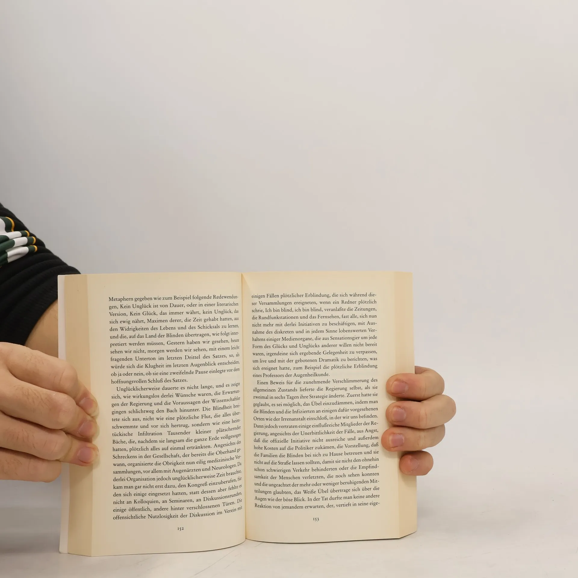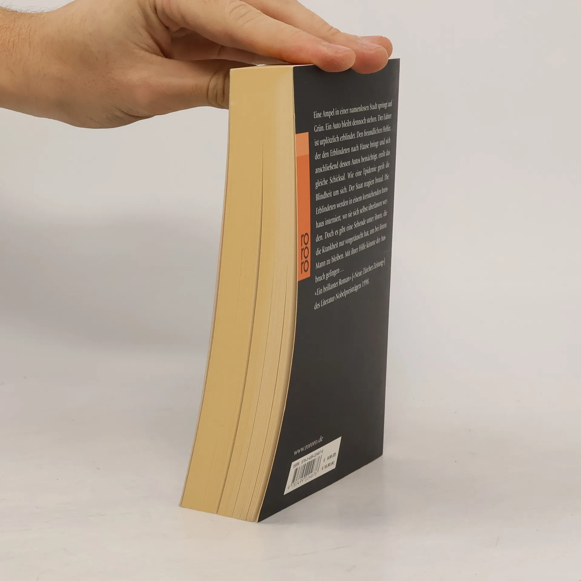 Ein Mann steht an einer roten Ampel und wartet auf Grün, doch plötzlich ist er blind. Sein Augenarzt steht vor einem Rätsel. Noch am gleichen Abend erblindet auch er. Wie eine gefährliche Seuche greift die Blindheit um sich. Der Staat reagiert hilflos und sperrt die Blinden in eine leerstehende Irrenanstalt. Schon bald sind die Zustände in dem Haus katastrophal. Zunehmend sind die Insassen dem Terror ihrer Bewacher ausgesetzt. Unter ihnen ist auch der Arzt mit seiner Frau. Sie ist die einzige Sehende …«Ein brillanter Roman.» (Neue Zürcher Zeitung)