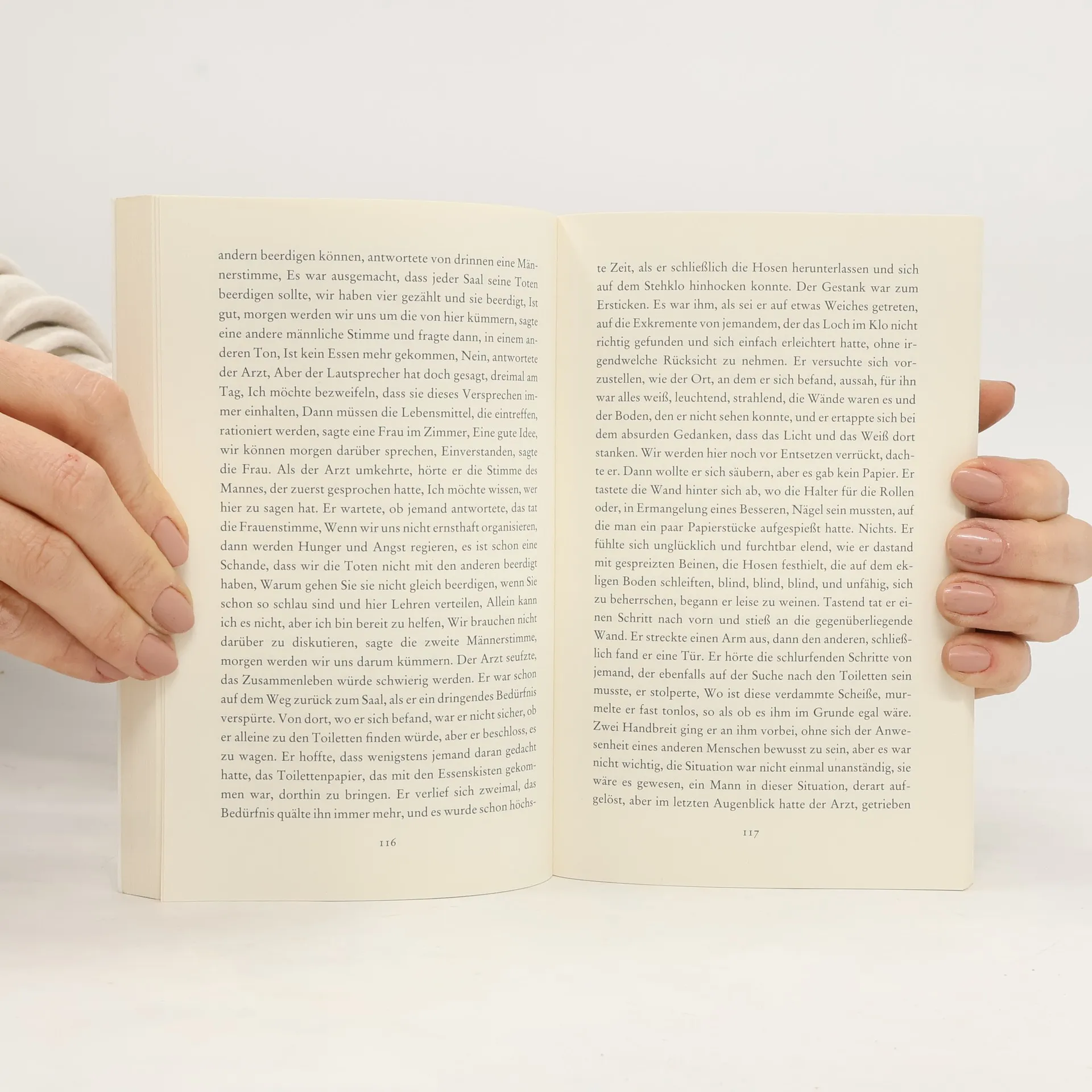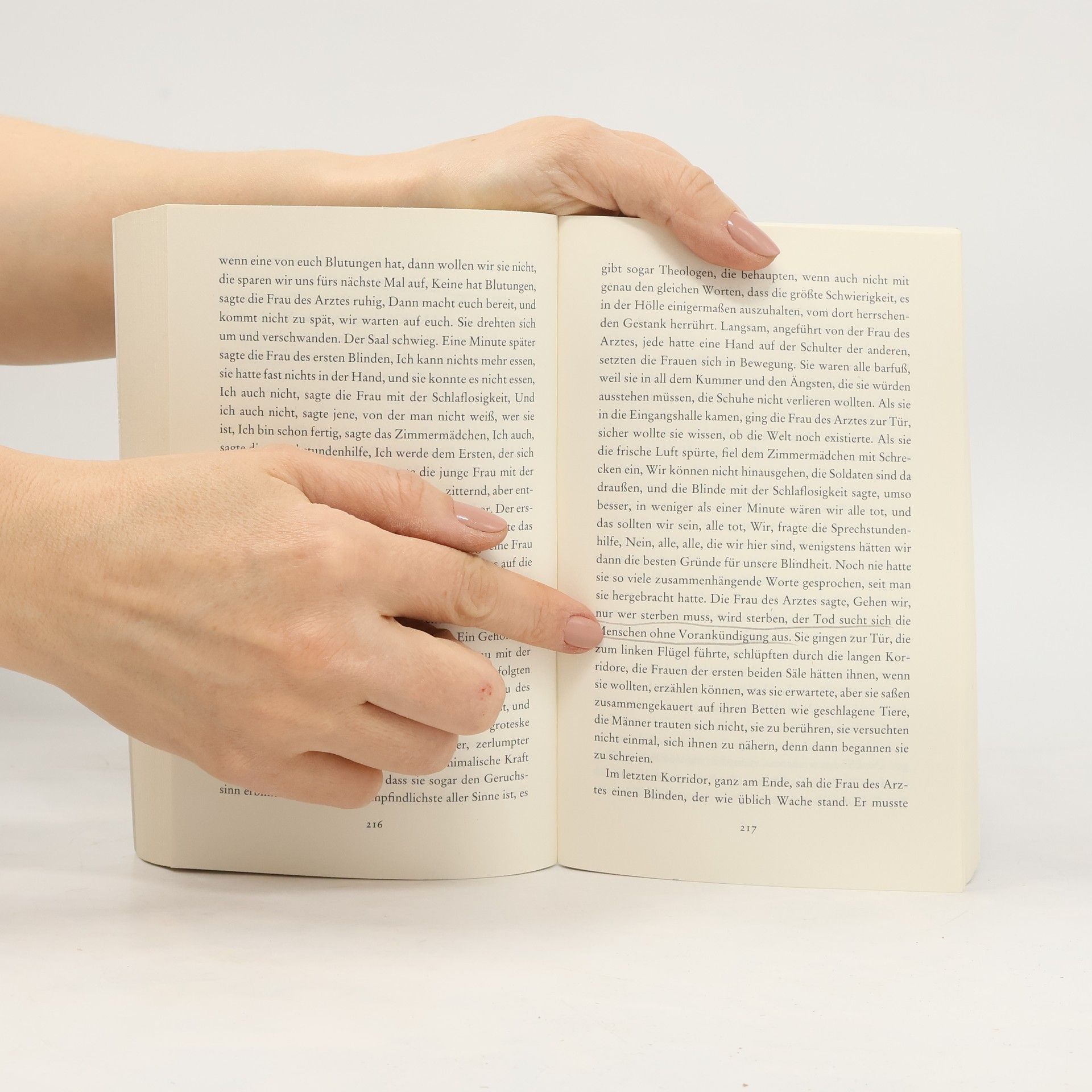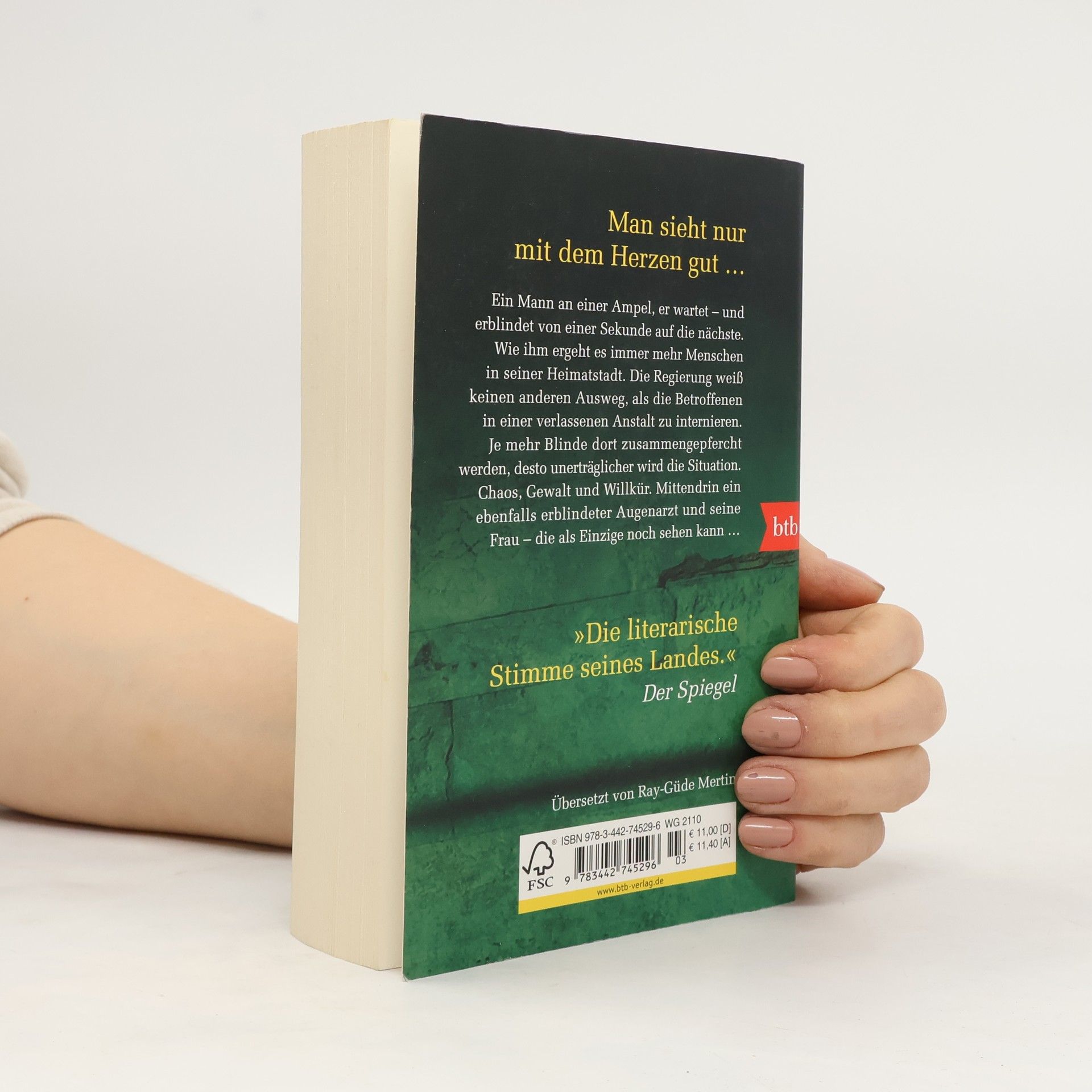 Saramagos Antwort auf Die Pest von Albert Camus. Ein Mann steht an einer Ampel. Von einer Sekunde auf die nächste, ohne erklärbaren Grund, erblindet er. Wie ihm ergeht es immer mehr Menschen in seiner Heimatstadt. Wie eine Seuche greift die Blindheit um sich. Die Regierenden wissen sich nicht anders zu helfen, als die Betroffenen in einer verlassenen Irrenanstalt einzuquartieren – unter der Bewachung von Soldaten, die auf jeden schießen, der fliehen will. Je mehr Blinde dort zusammengepfercht werden, desto schlimmer, desto unmenschlicher wird die Situation. Inmitten dieses grausamen Chaos befindet sich ein Augenarzt mit seiner Frau – die als Einzige noch sehen kann …